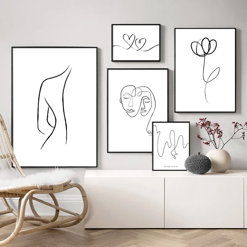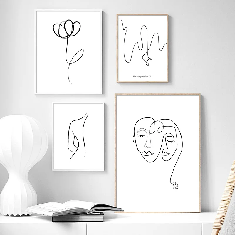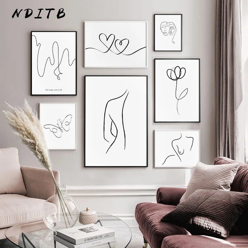 Абстрактная линия, холст, черно-белая Настенная картина, минималист...