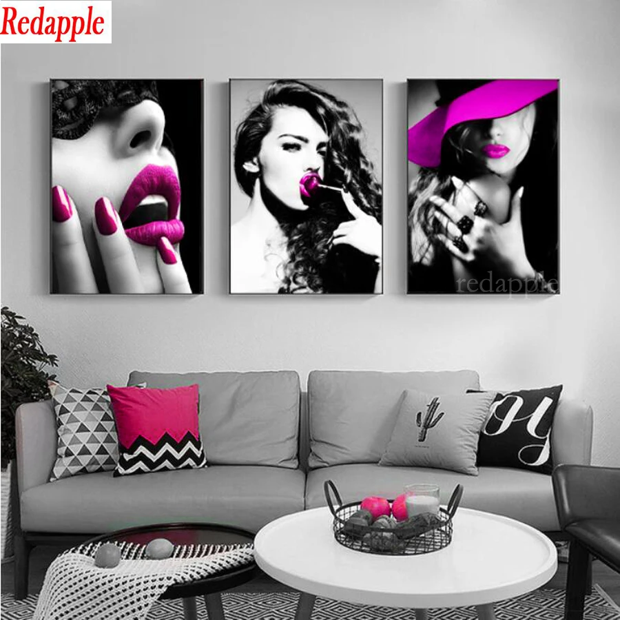 Женские сексуальные губы 5D Diy Алмазная картина фиолетовое искусство Алмазная мозаика полностью квадратная круглая дрель 3 шт Вышивка Портрет Вышивка крестом