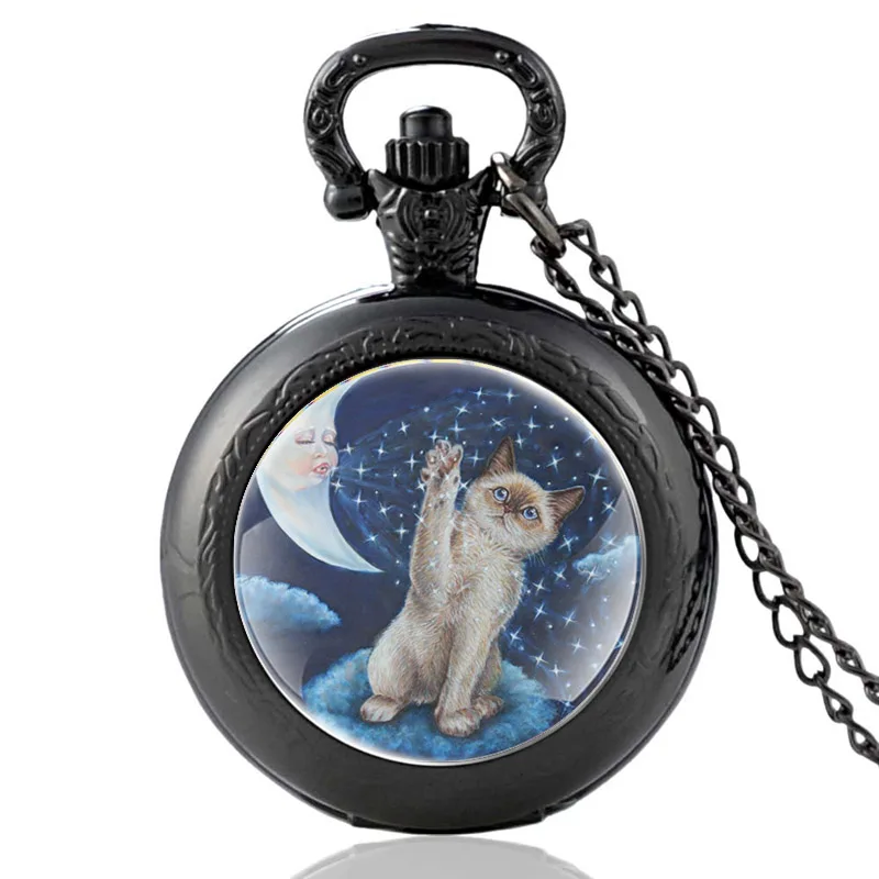 Черные классические кварцевые карманные часы с кабошоном из стекла ...