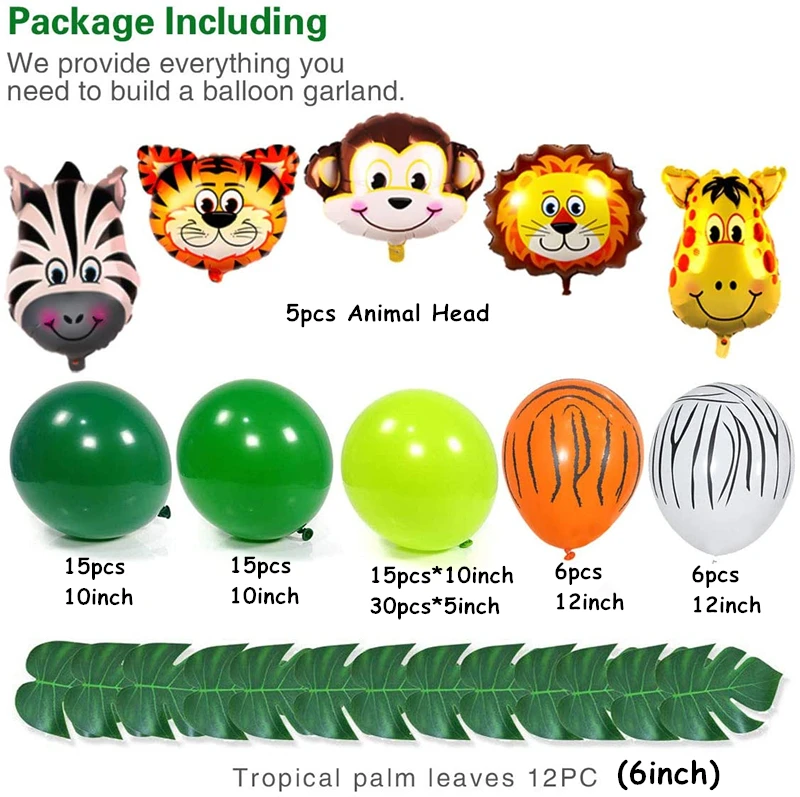 1 комплект воздушные шарики в виде животных комплект гирлянды джунгли сафари принадлежности для тематической вечеринки сувениры детский день рождения, день рождение мальчика Вечеринка Детский душ украшения