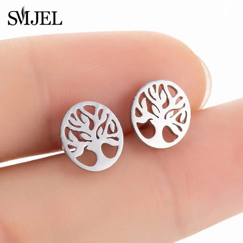 Серьги-гвоздики из нержавеющей стали в виде дерева