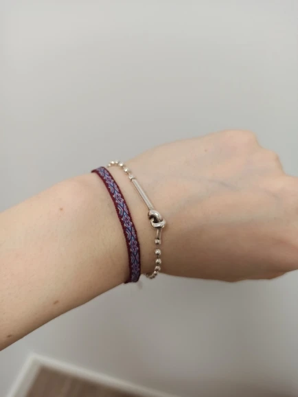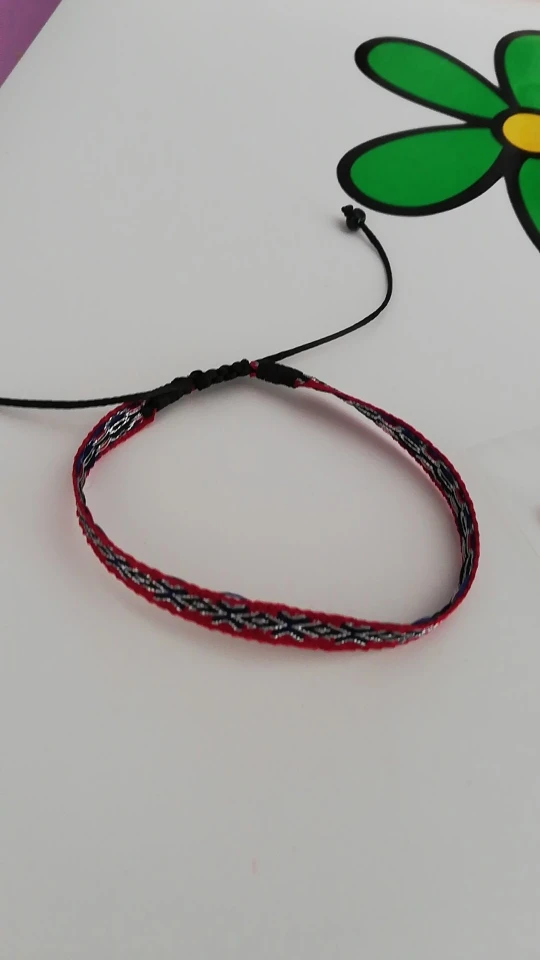 Так как у продавца нет фото с браслетом на руке, он кажется шире чем на самом деле. Так по ширине он примерно 6 мм. На застёжке скользкие нитки, в течении дня сдвигаются и фенька начинает болтаться на руке, но это не критично