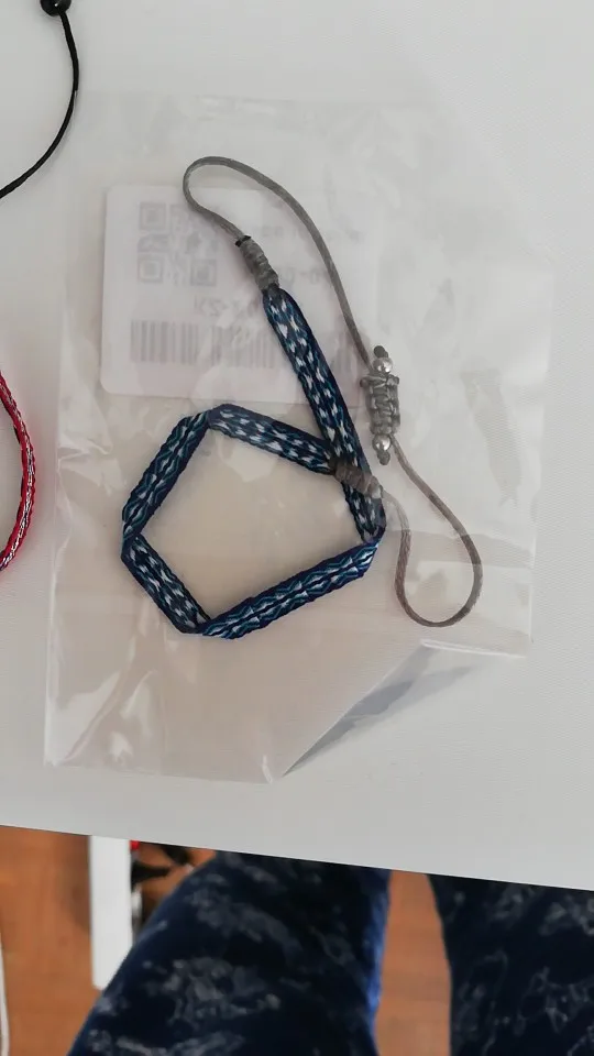 браслет тоненький, размер изменяется, у меня тонкое запястье 13см, поэтому слегка перекручивается, на вид как из простой ткани, не плетёный