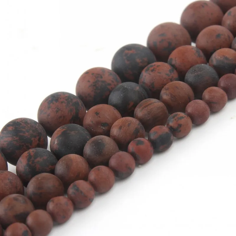 Натуральный Матовый камень из красного дерева обсидиан яшмы вокруг свободные бусины для DIY ювелирных изделий браслет аксессуары 15 ''4 6 8 10 12 мм