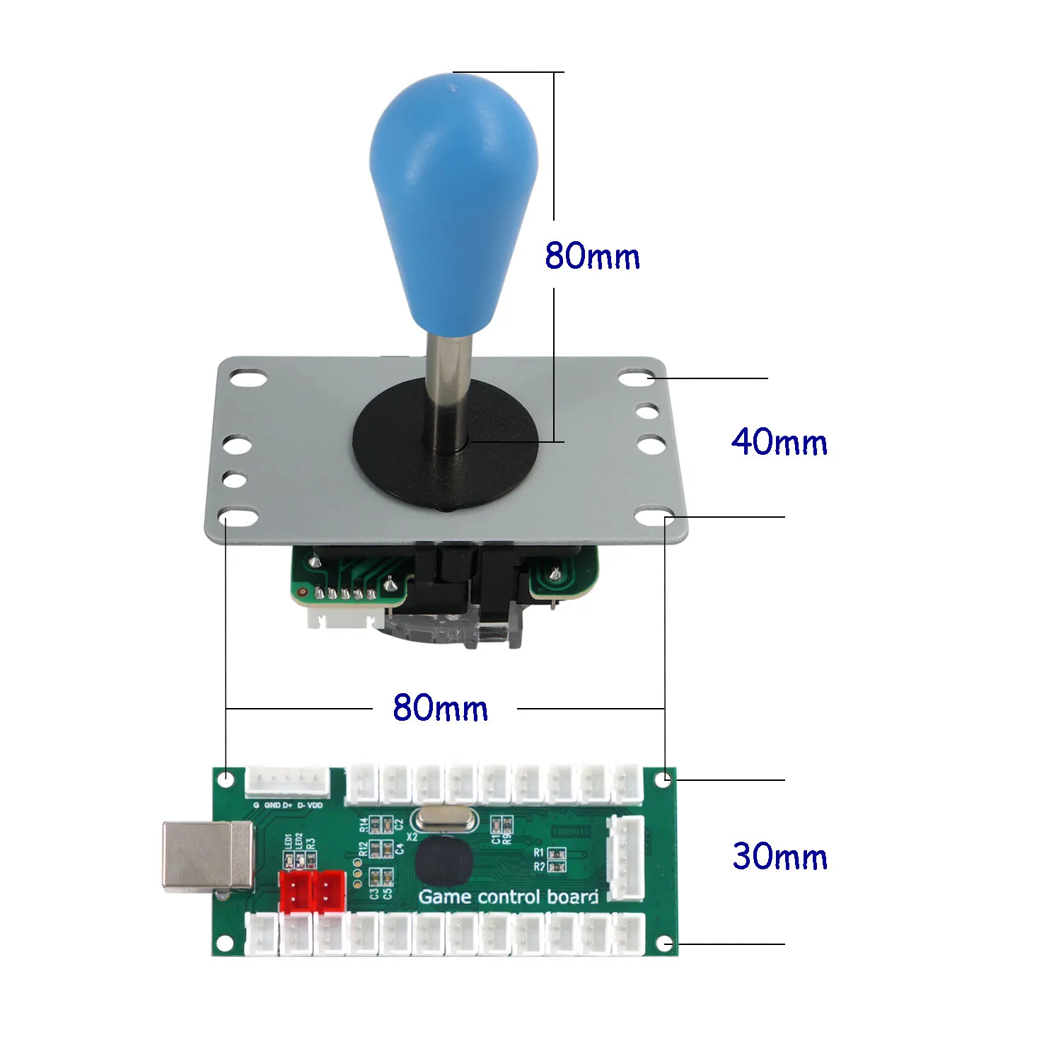 Отверстие для кнопки 28 мм, отверстие для джойстика 24 ~ 30 мм, usb-кабель 180 см, кнопка и кабель джойстика 20 см.