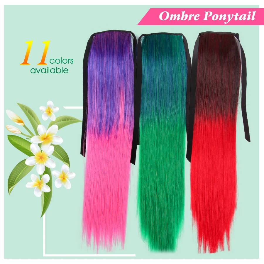 Синтетические хвостики для прически 20 дюймов длинный прямой конский хвост наращивание волос на шнурке конский хвост на заколке искусственные волосы хвост Омбре