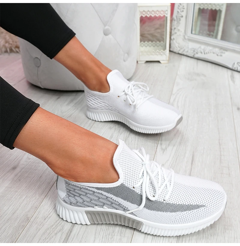 Женские кроссовки; Удобные женские дышащие туфли на плоской подошве; Повседневная женская модная прогулочная Обувь На Шнуровке; Большие размеры