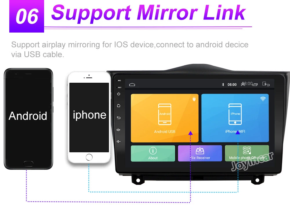 1.Wi-Fi подключение: встроенный модуль Wi-Fi, может подключаться к Интернету через Wi-Fi горячее место, скачать приложение для просмотра онлайн-телевизора, фильма, чата с вашими фирмами2. Gps-навигация: Встроенный навигационный модуль, Бесплатная навигационная карта (включая большинство стран слова), Поддержка многоязычного интерфейса/голосовой навигации3. Функция Bluetooth: Встроенный модуль bluetooth, поддержка подключения телефона по bluetooth, громкая связь для звонков или воспроизведение музыки по bluetooth4. Функция зеркальной связи: проигрыватель Android MP5 может зеркальной связью с телефоном Android с помощью usb-кабеля (ссылка на телефон IOS по WIFI), вы можете прикоснуться к экрану MP5, чтобы управлять телефоном на AndroidТелефон IOS не может работать с сенсорным экраном MP5 (не подходит для всех телефонов)5. Функция входного сигнала DVR: Поддержка внешнего видеорегистратора USB (DVR) вход (только для DVR с приложением), вы можете управлять видеорегистратором с помощью приложения6. Функция заднего вида: Поддержка входа камеры заднего вида, поддержка автомобиля более безопасная и удобная7. Настройка радио: Поддержка настройки FM, вы можете слушать радио, которое вас интересует, наслаждаться временем вождения8. Задний usb-порт Вход: Поддержка заднего кабеля USB вход, может воспроизводить музыку/фильм (u-диск не входит в комплект)Разрешение 9,1020*600: приносит вам высокое качество визуального опыта10. Улучшите качество звука с эквалайзером, используйте эквалайзер для регулировки звука, чтобы сделать лучшие результаты11. Поддержка изменения логотипа автомобиля12. Поддержка управления рулевым колесом13. Сервис Google-Play Store , Gmail , Google maps и т. Д. Поддерживает множество приложений для карт, которые вы можете скачать в Google shop ( Careland , Yandex , IGO и т. Д.)14. Поддержка онлайн и оффлайн карт, I-GO ; Sygic ; Navitel maps, других стран I-GO или Sygic maps.15. Поддержка цифрового ТВ CMMB (опционально)16. Поддержка USB DVR (опционально)17. Поддержка TMPS (опционально)18. Поддержка OBD (опционально)19. Поддержка DAB (опционально)