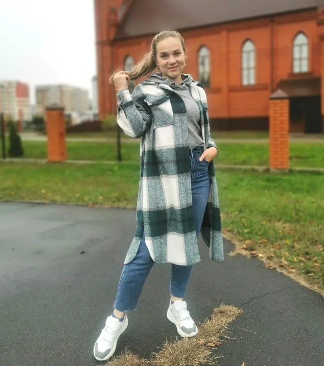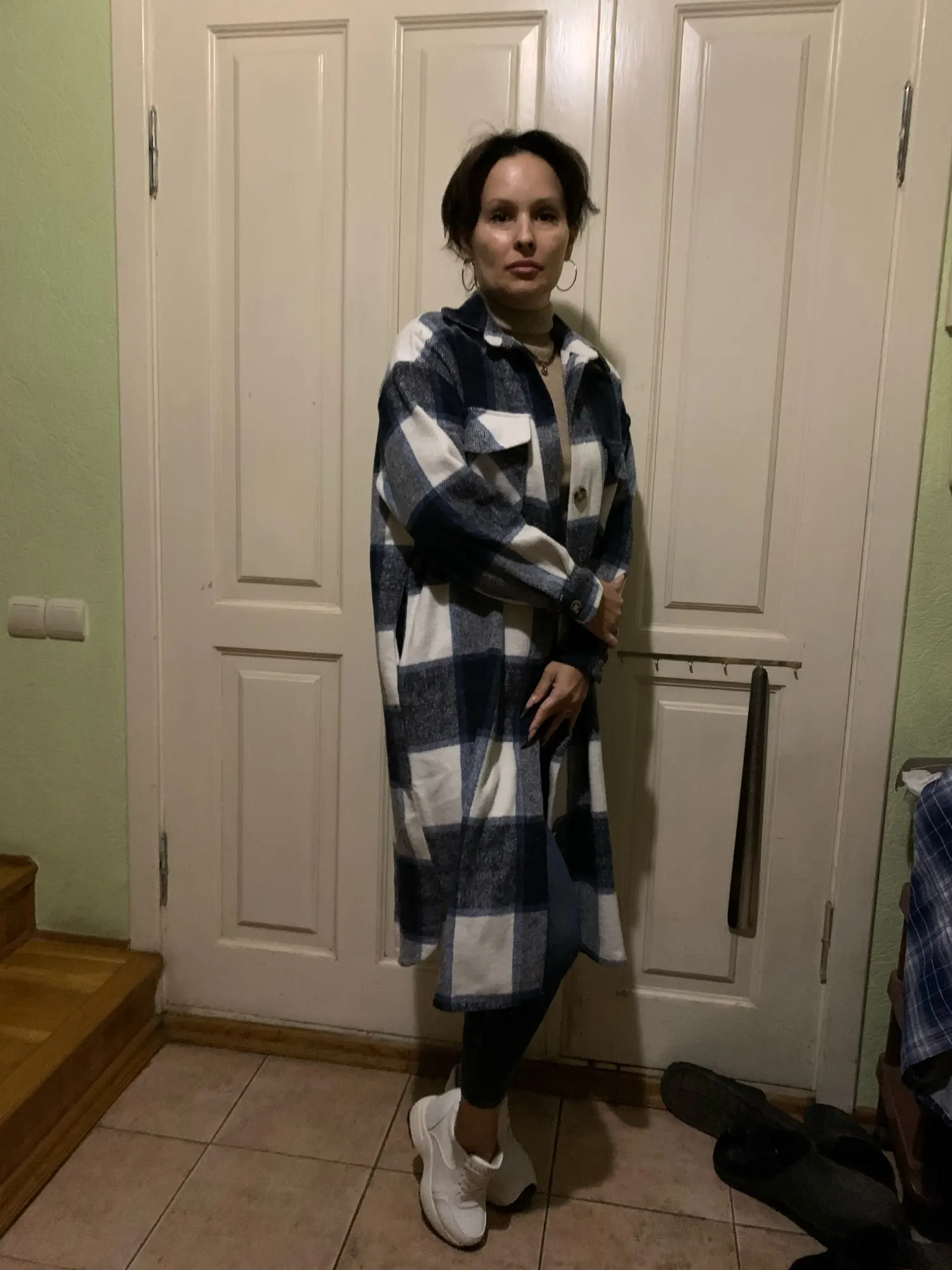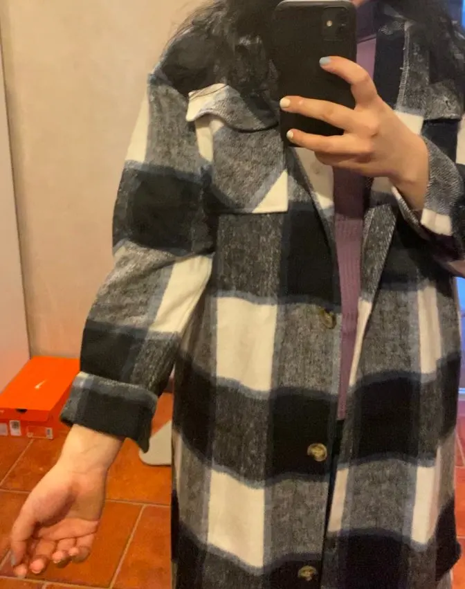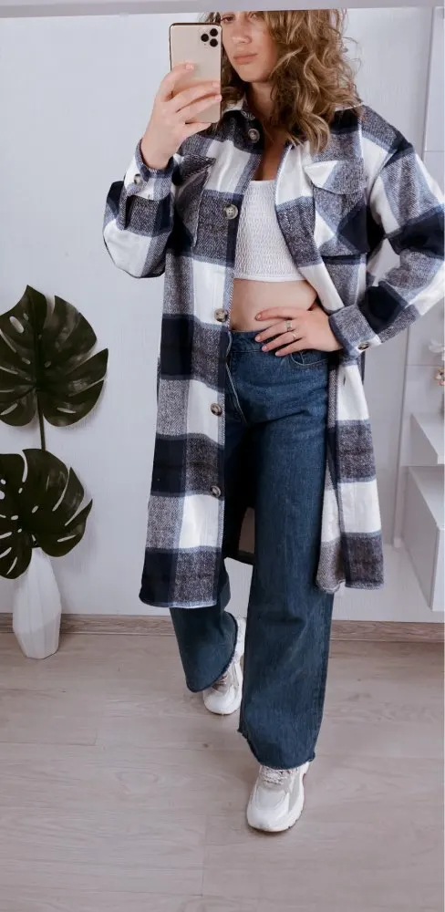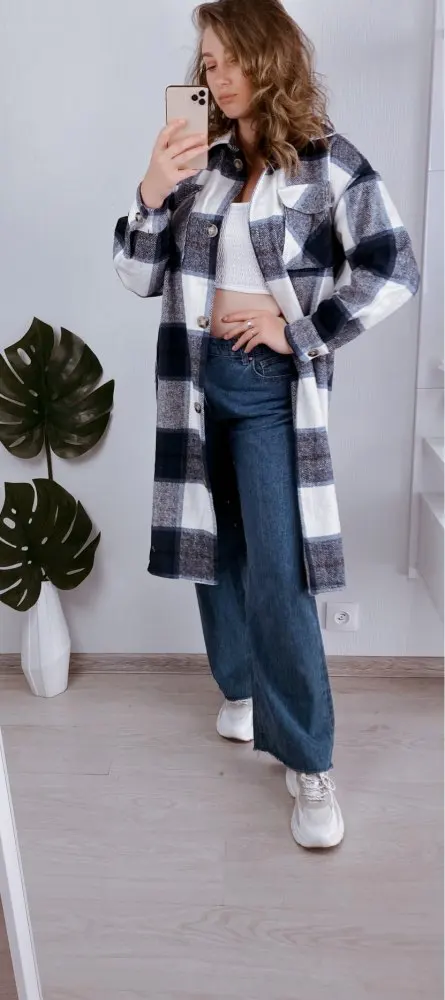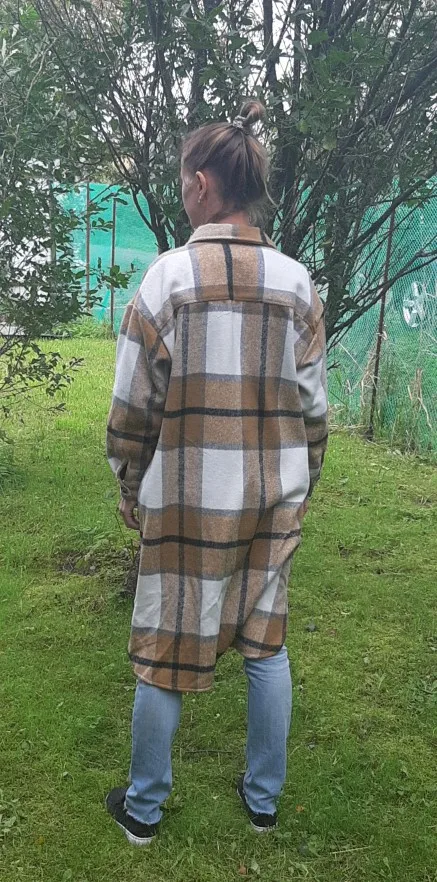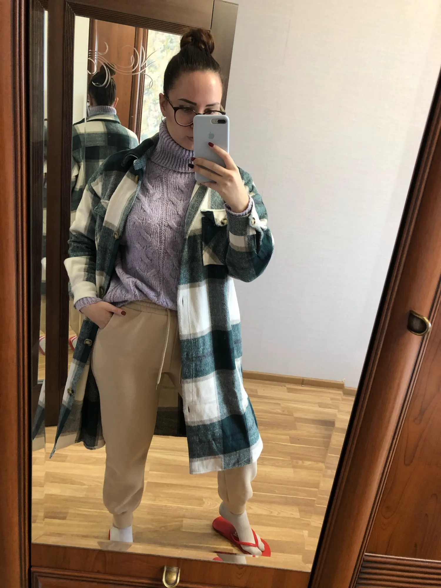 Тёплая и уютная рубашка, ношу как пальто, на рост 152 см длинная, как по мне. Если под каблук, то норм, под кроссовки мне пока не нравиться, заказала к ней пояс, думаю будет не плохо
