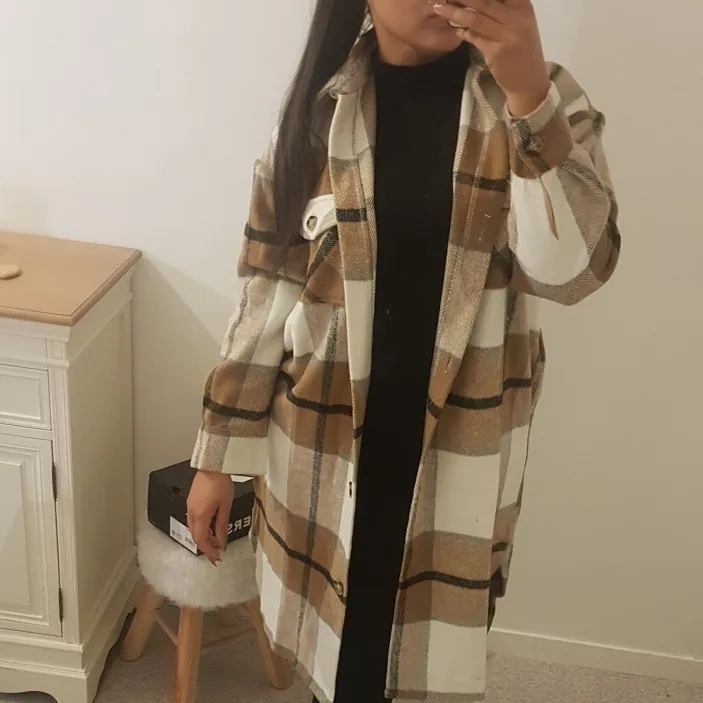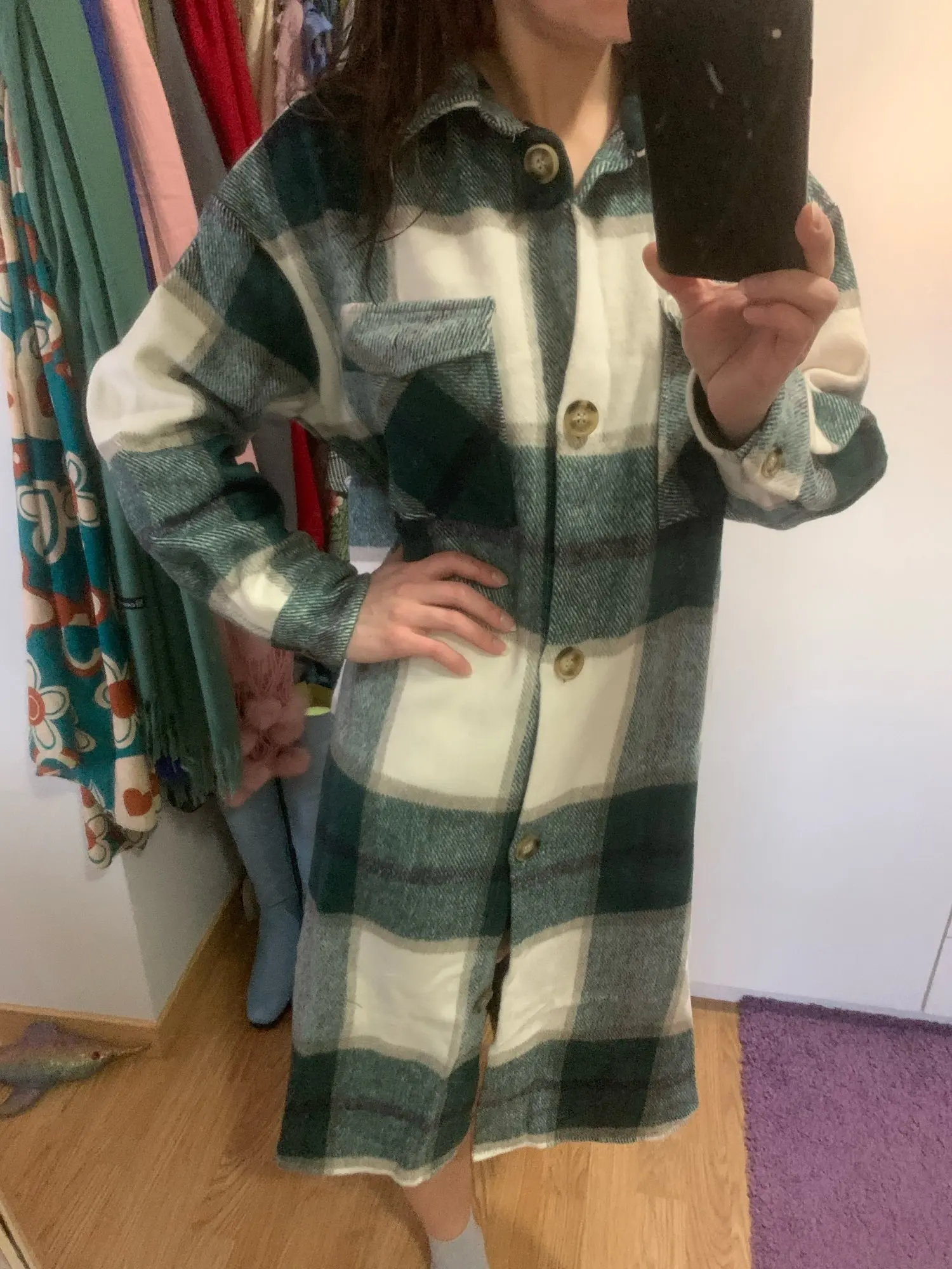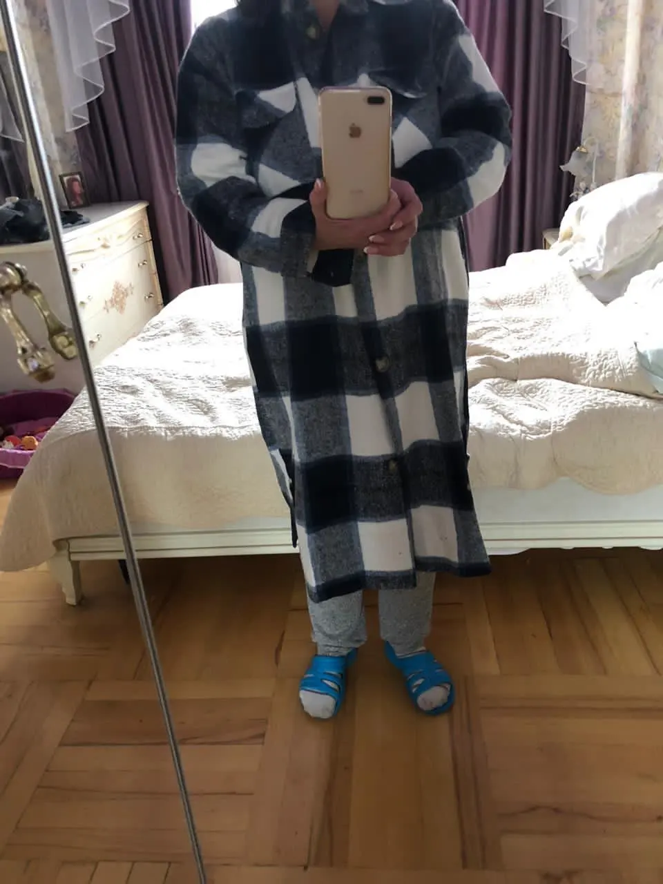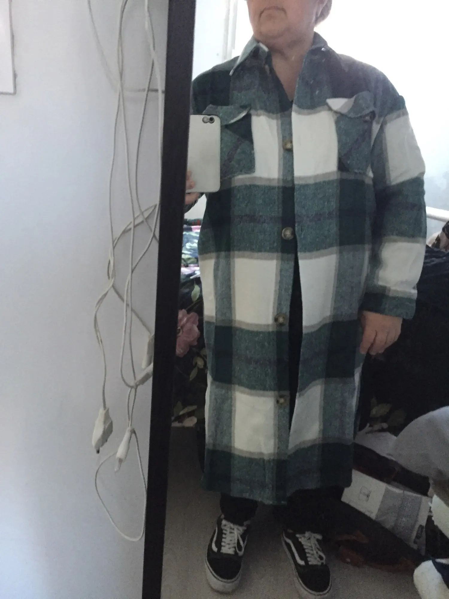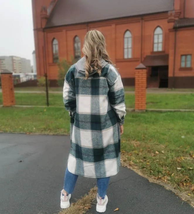 Тёплая и уютная рубашка, ношу как пальто, на рост 152 см длинная, как по мне. Если под каблук, то норм, под кроссовки мне пока не нравиться, заказала к ней пояс, думаю будет не плохо