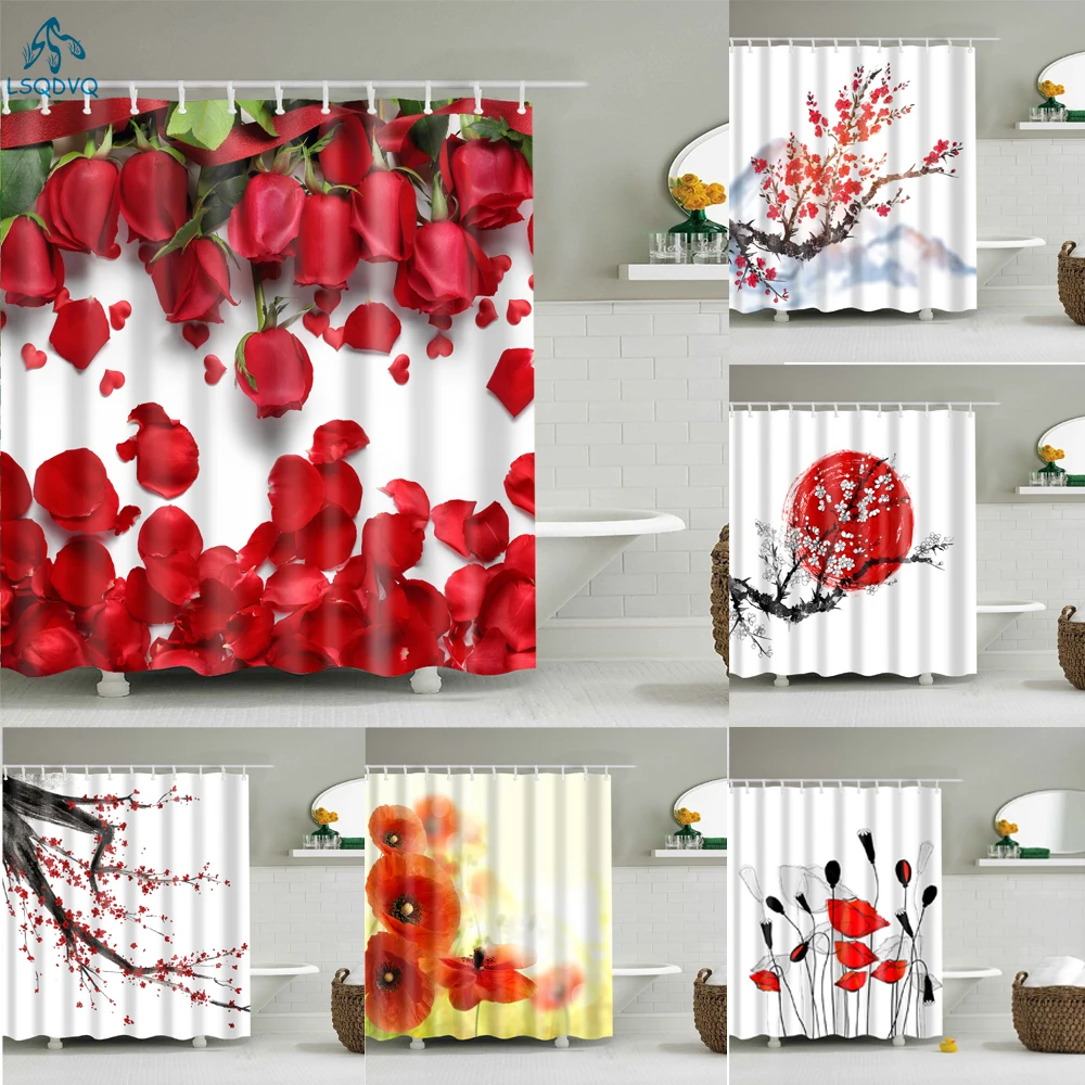 Модная занавеска для душа в виде цветка сливы, лотоса, лаванды, роз...