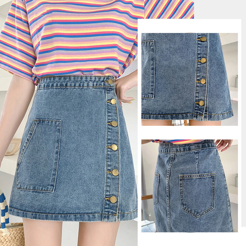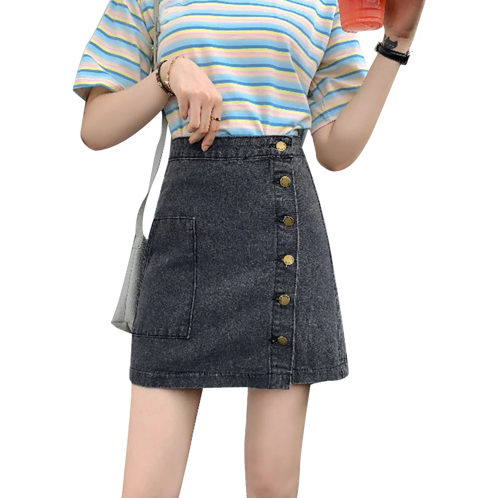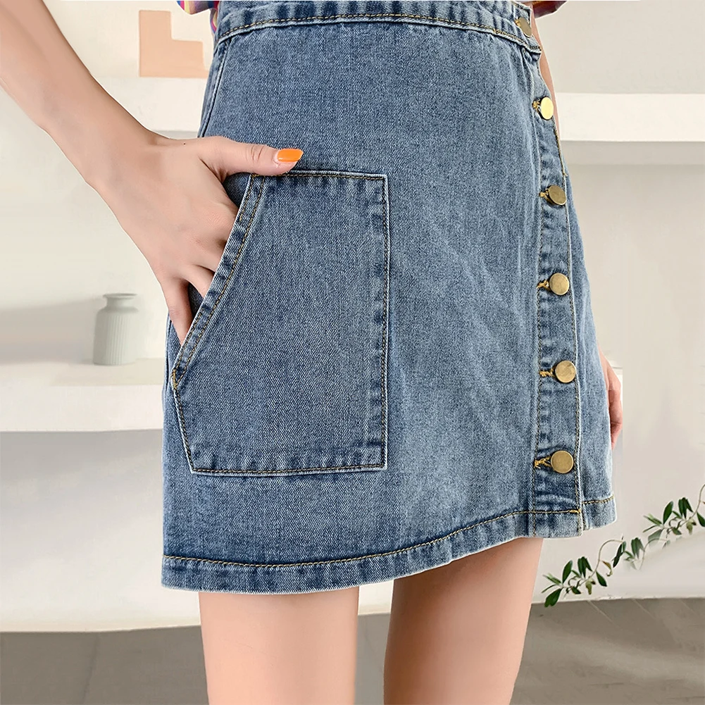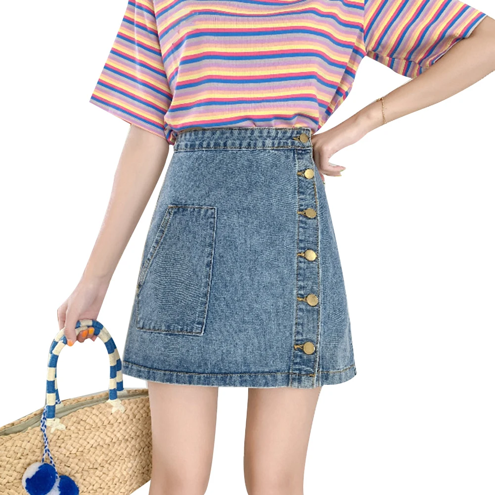 Мини-юбка женская джинсовая на пуговицах, модная трапециевидная с завышенной талией, с боковыми карманами, из денима