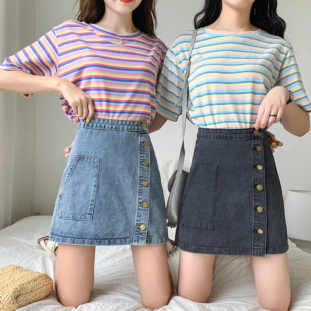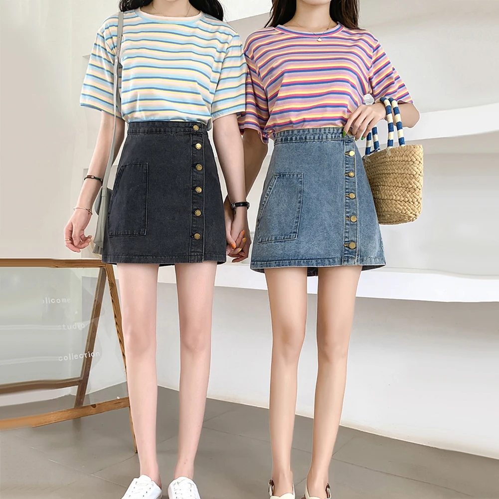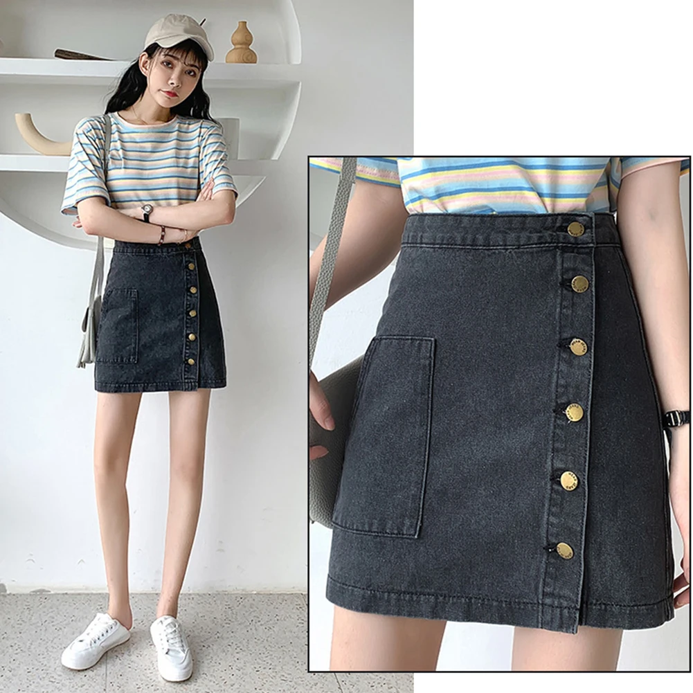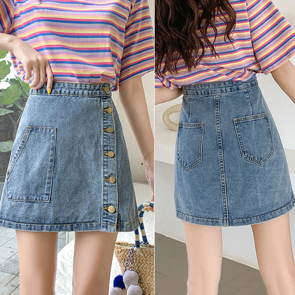 Мини-юбка женская джинсовая на пуговицах, модная трапециевидная с завышенной талией, с боковыми карманами, из денима