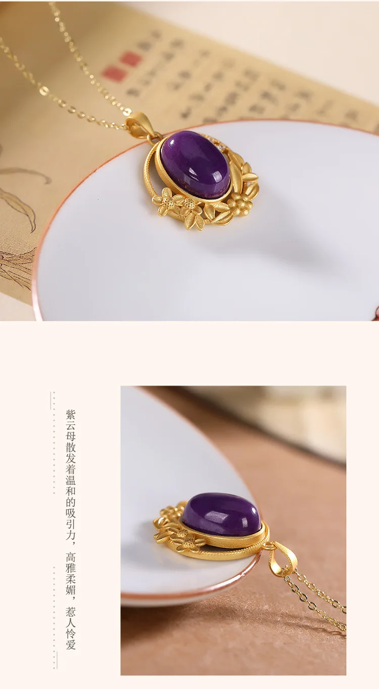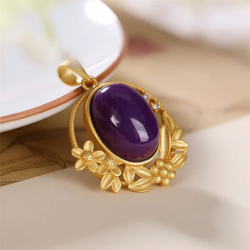 Женские ожерелья-подвески с натуральными фиолетовыми драгоценными камнями, без цепей, золотые цветы, украшения из серебра 925 пробы