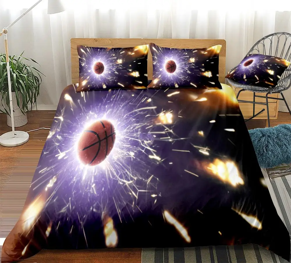 Баскетбольный Комплект постельного белья для мальчиков-подростков, пододеяльник, постельное белье, оранжевый Текстиль для дома, комплект кровати из микрофибры