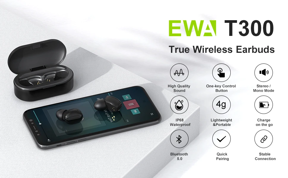Наушники-вкладыши EWA T300 Bauhaus, беспроводные наушники-вкладыши с поддержкой Bluetooth 5,0, HD стерео, водонепроницаемые наушники с микрофоном, бесплатная доставка