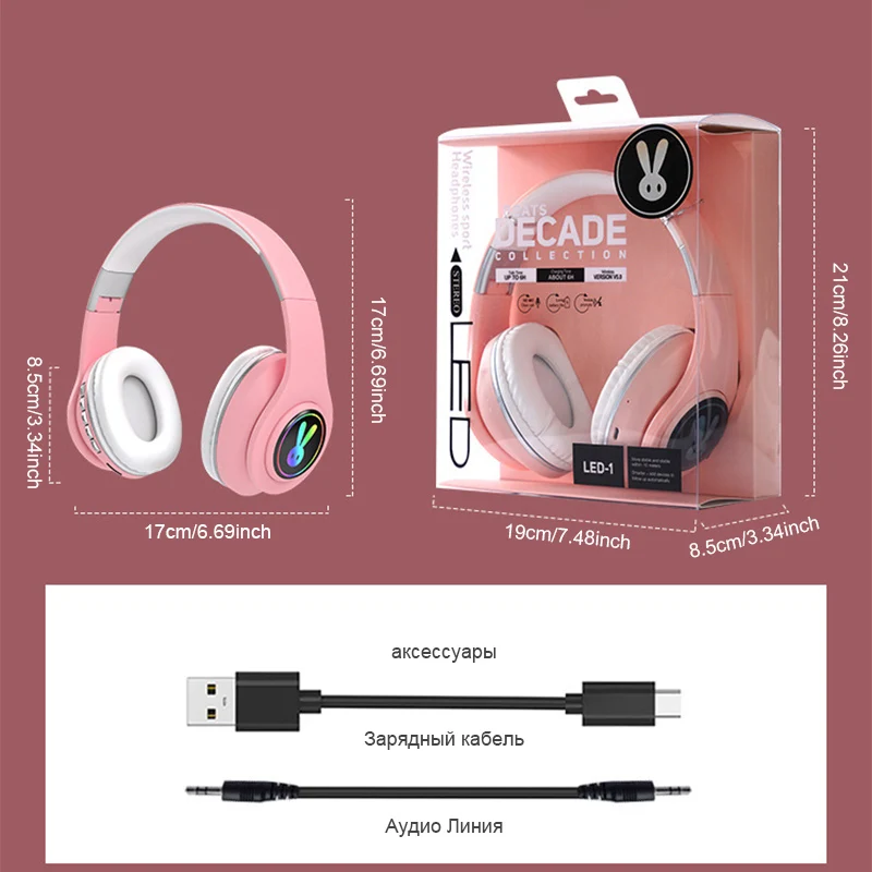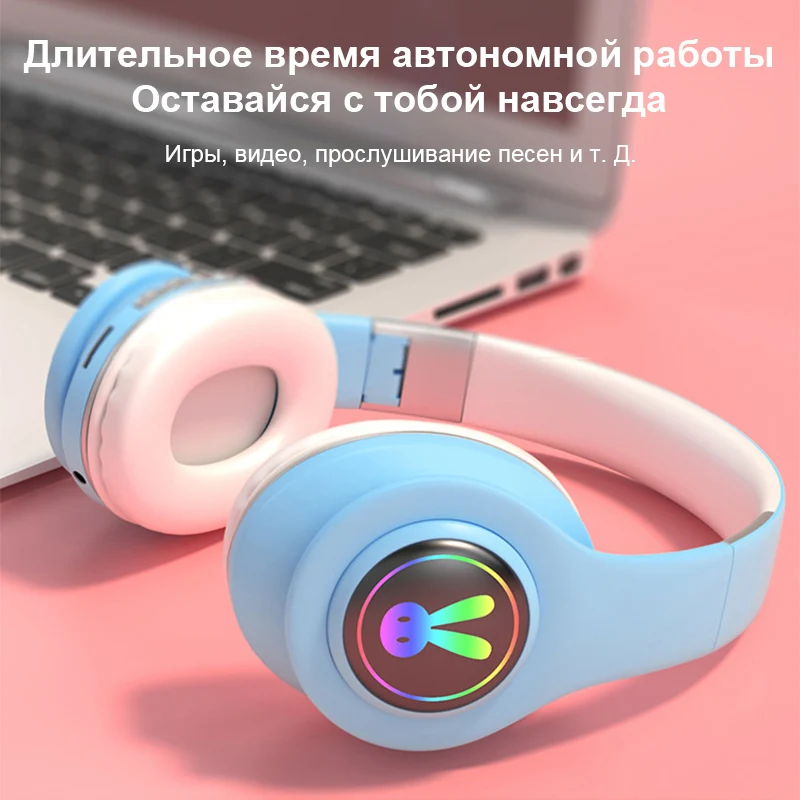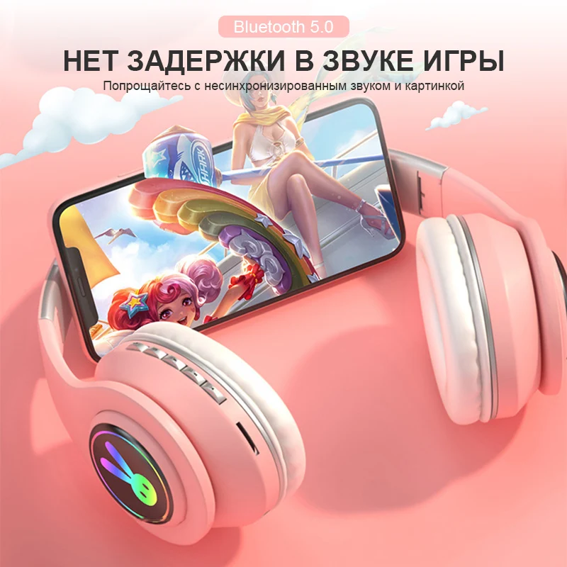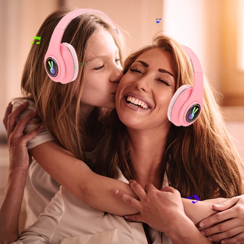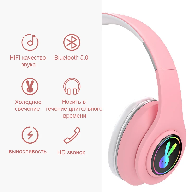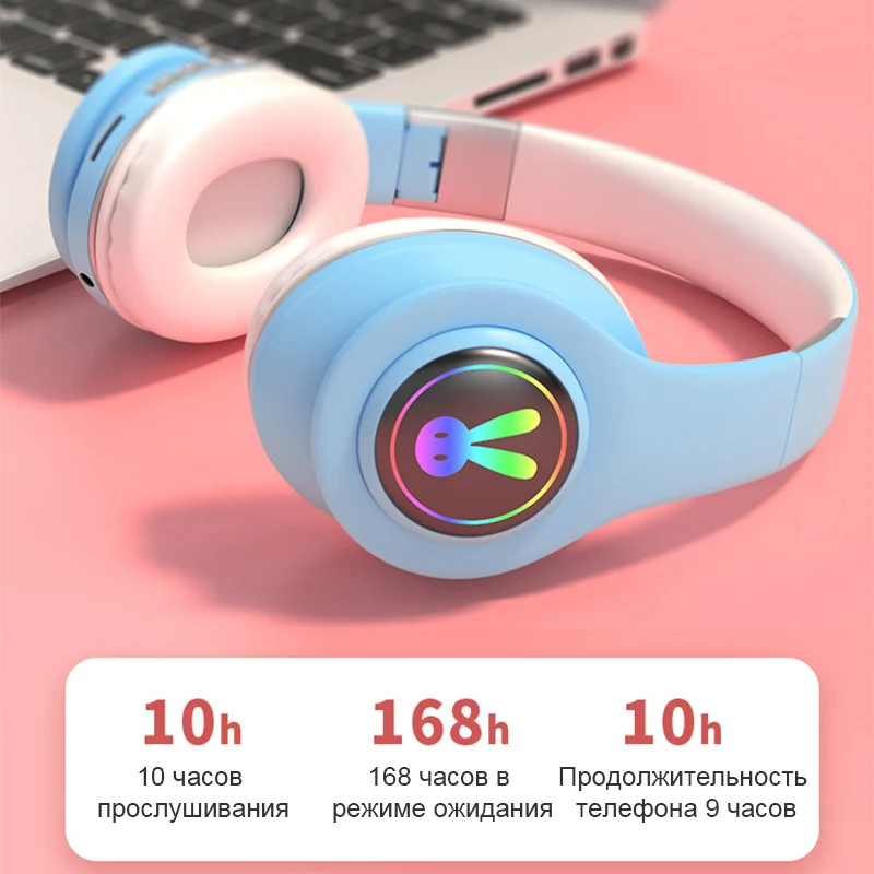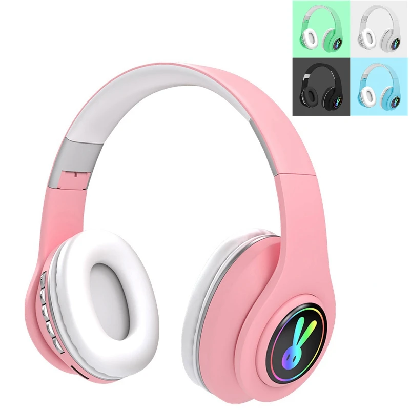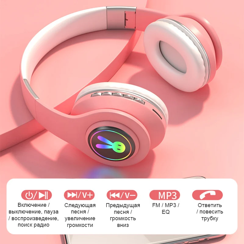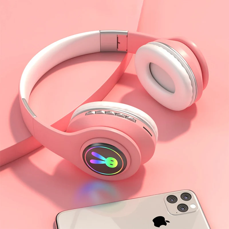 Складные светодиодные беспроводные детские наушники Rabbite с микрофоном милые девушки Bluetooth музыкальный шлем для iphone Android Xiaomi подарок