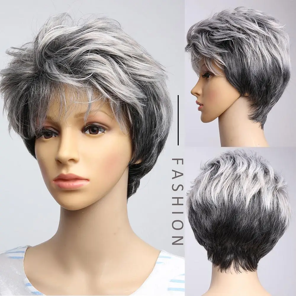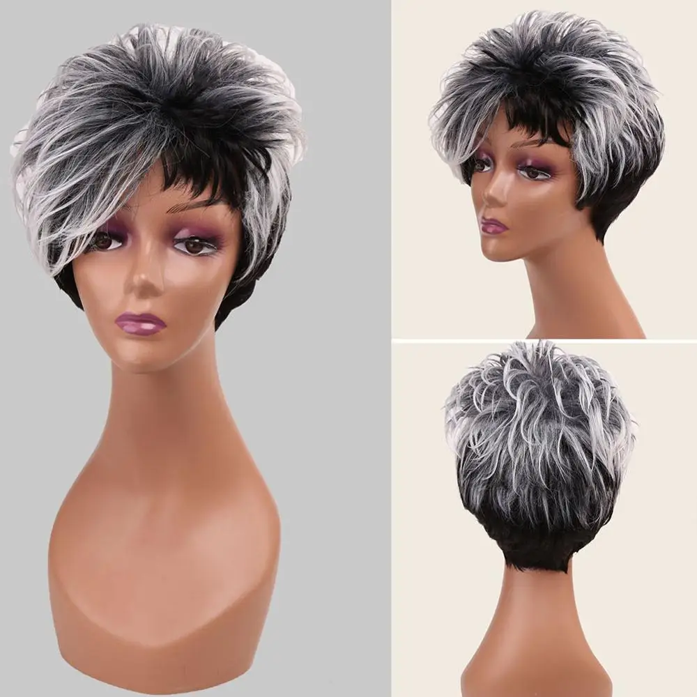 Парик Amir из коротких синтетических волос с эффектом деграде, парики из черных светлых волос для женщин, естественно выглядящие кудрявые парики, парики из светлых и серых волос с челкой