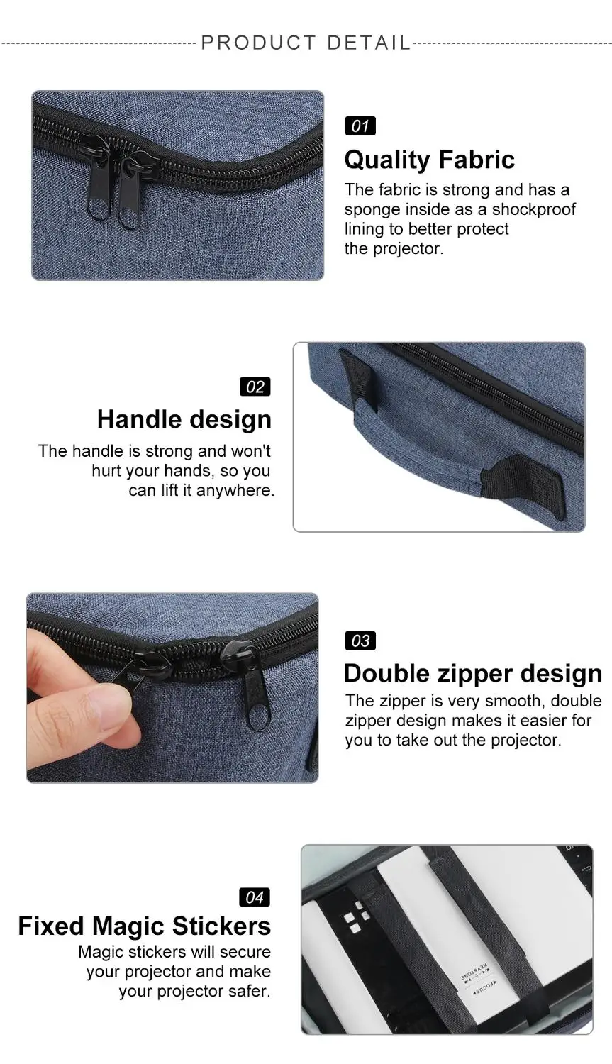 Прочные ручки для удобной переноски. Предназначен как чехол для переноски, а также сумка для хранения, так что вы можете легко взять ваш видеопроектор и аксессуары везде.