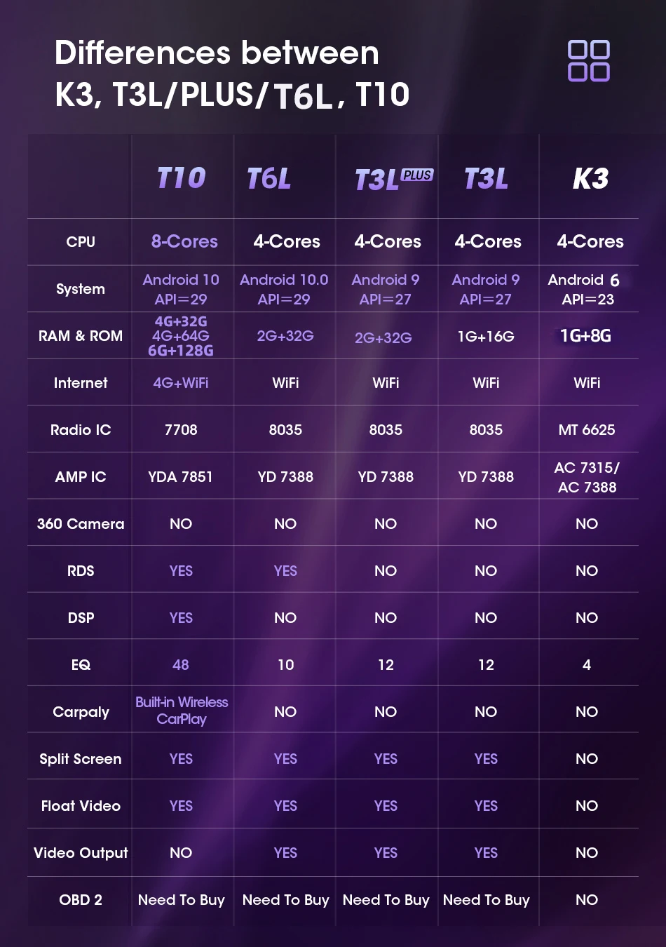 Самая последняя T10/PLUS/PRO версия andriod 10 8 ядро системы, с поддержкой 4 Гб Оперативная память + 32 ГБ Встроенная память, 4GB RAM + 64GB ROM и 6GB RAM + 128GB ROM опционально, мы будем продолжать запускать более мощные машины, пожалуйста, обратите внимание, что наш магазин получает уведомления о новых продуктах).