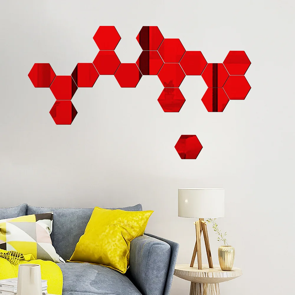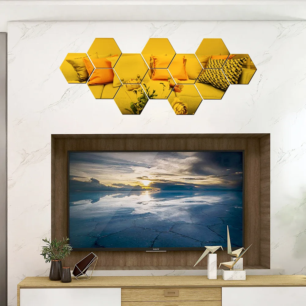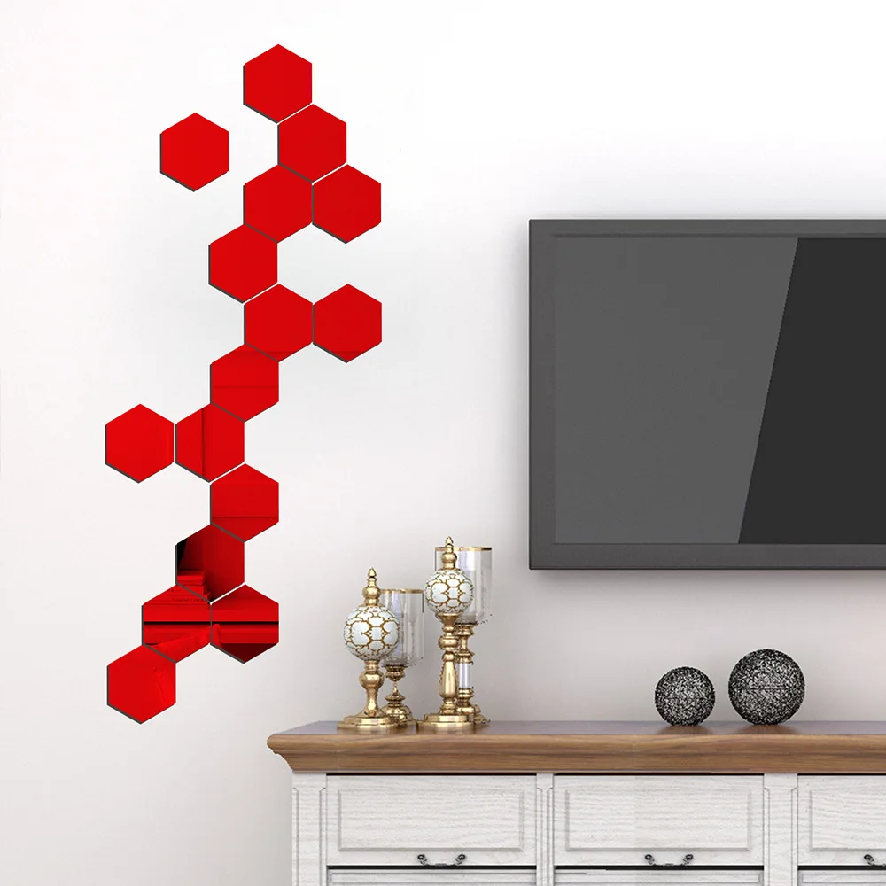 12 шт. 3D шестигранные акриловые зеркальные настенные стикеры s DIY искусство настенный Декор стикеры s домашний Декор Гостиная зеркальные декоративные Стикеры