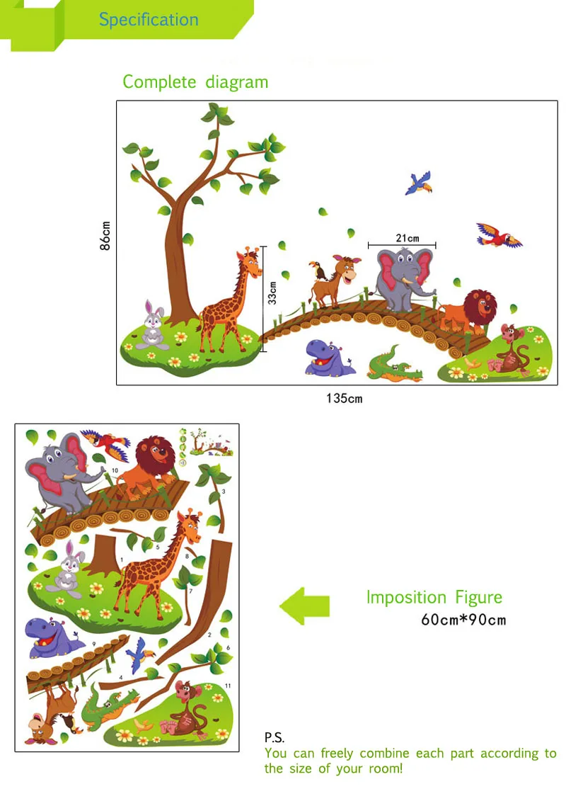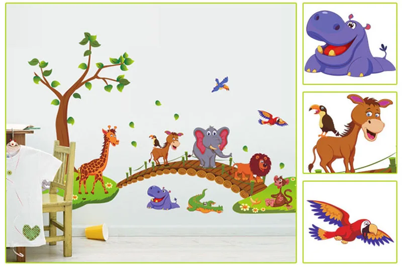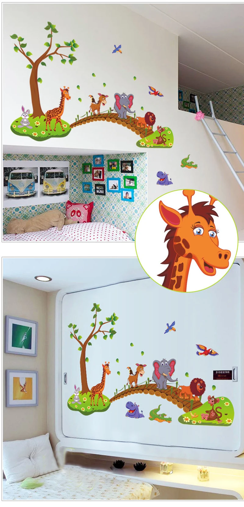 Мультяшные животные для детской комнаты детского сада креативные наклейки на стену съемные наклейки на стену милые наклейки на стену из ПВХ