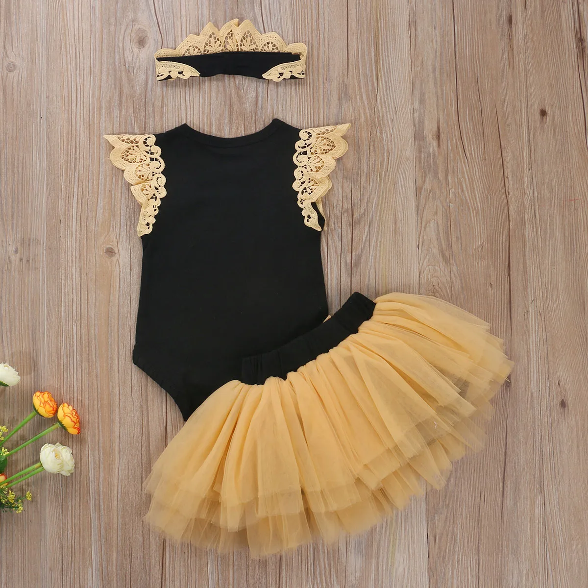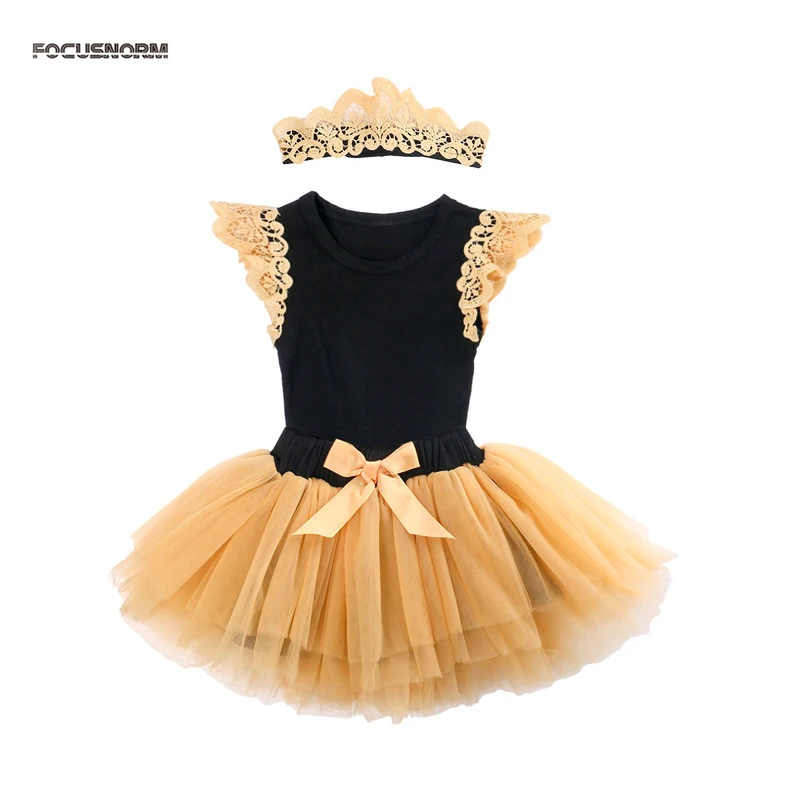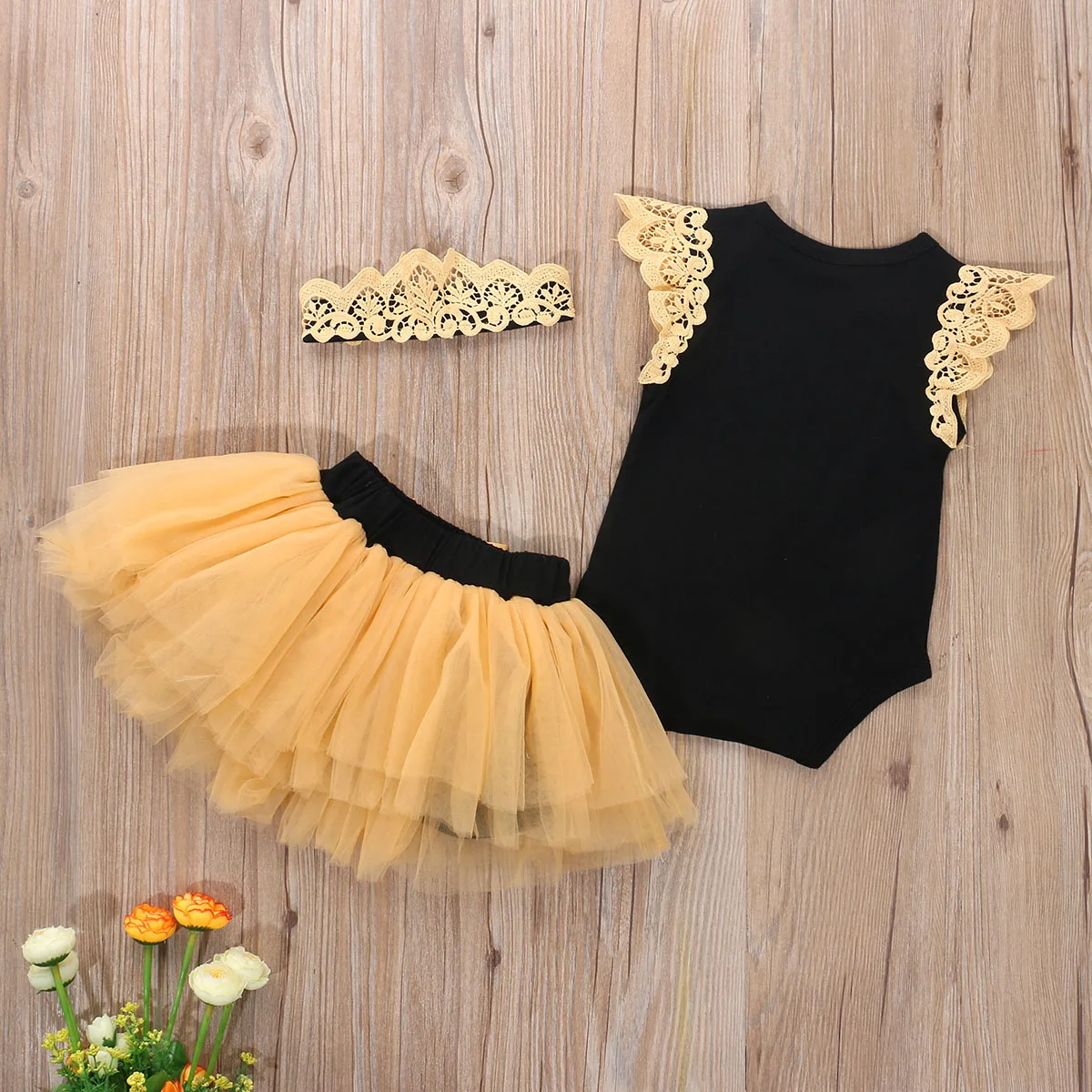 Комплект детской одежды FOCUSNORM для девочек, 3 шт., кружевной комбинезон с оборками, топ, юбка-пачка, повязка на голову, 0-24 м