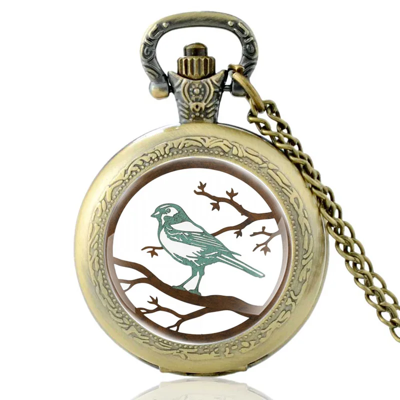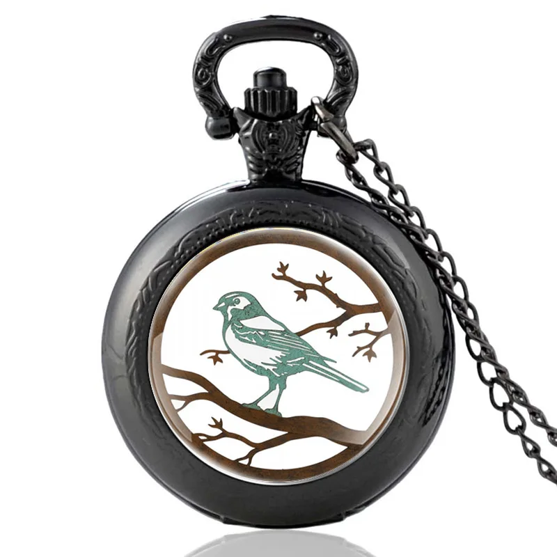 Черные кварцевые карманные часы в китайском стиле с изображением птиц, классические часы с подвеской, мужские и женские часы со стеклянным куполом и ожерельем, подарки