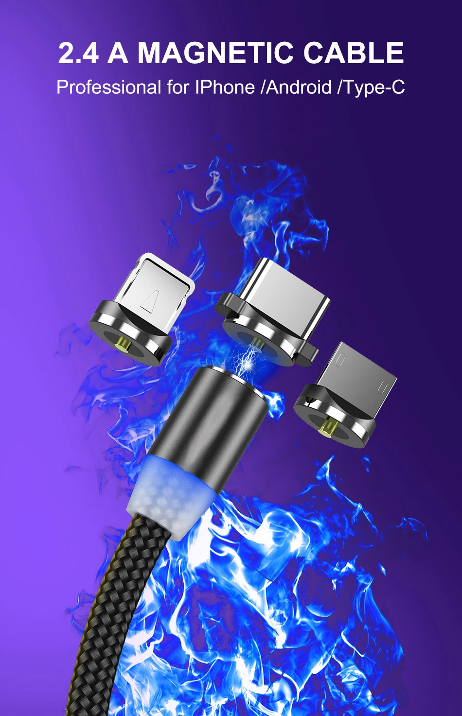 Магнитный кабель QICHSHJIN для iPhone Samsung, кабель Micro USB для быстрой зарядки, шнур магнитное зарядное устройство USB Type-C 2 м, мобильный телефон кабели