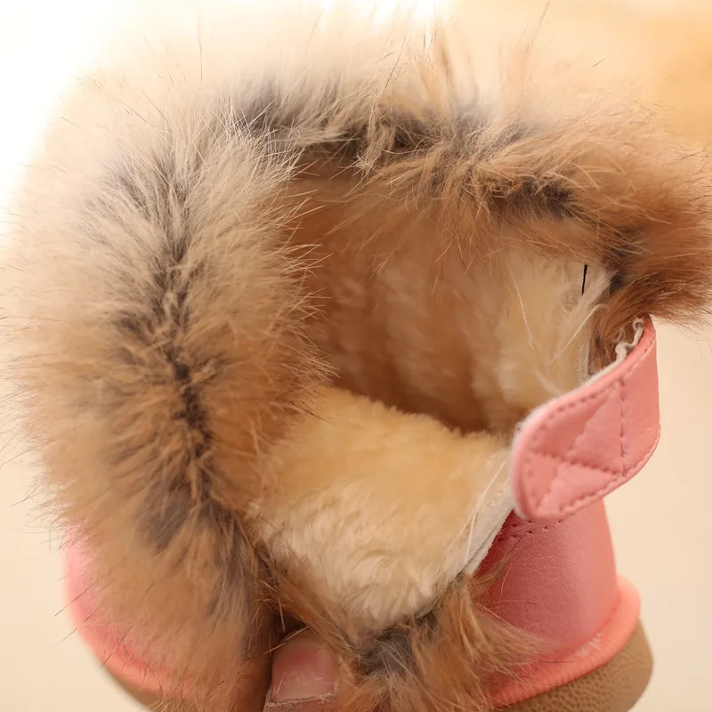 Детские ботинки на кроличьем меху, с плюшевой подкладкой, для девоч...