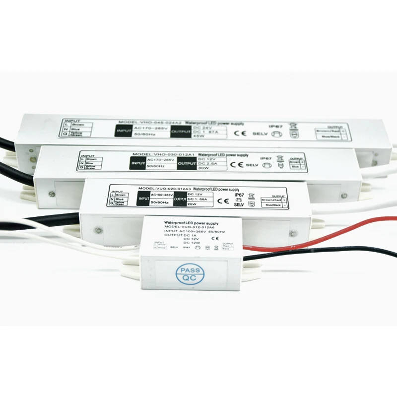 IP67 ультра-тонкий светодиодный регулятор адаптера 20 Вт 30 Вт 45 Вт 60 Вт DC 12 Вольт 24 вольт водонепроницаемый импульсный трансформатор