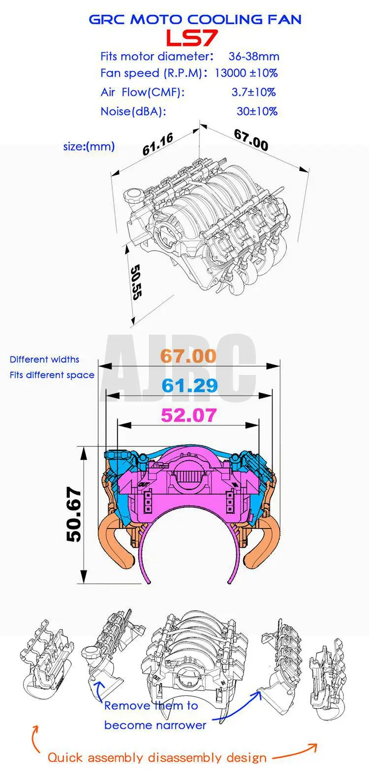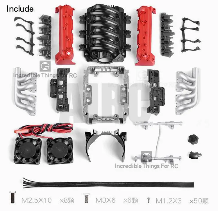 Вентилятор охлаждения LS7 V8 с имитацией радиатора, 1 шт., двигатель электрического двигателя для радиоуправляемого автомобиля 1:10, осевой SCX10 90046 TRX4 Redcat LS7 V8, двигатель trx6