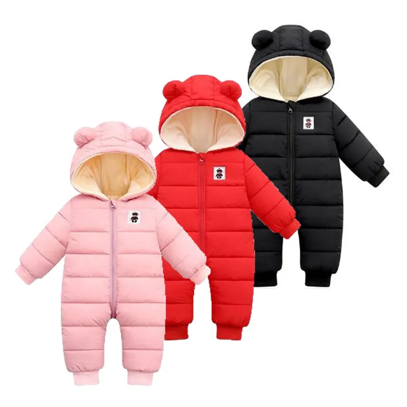 Комбинезон для маленьких девочек, зимняя одежда для новорожденных вельветовый теплый комбинезон с капюшоном и длинными рукавами для мальчиков от 0 до 24 месяцев
