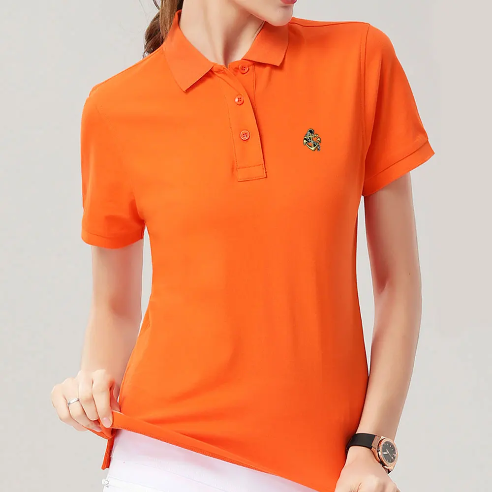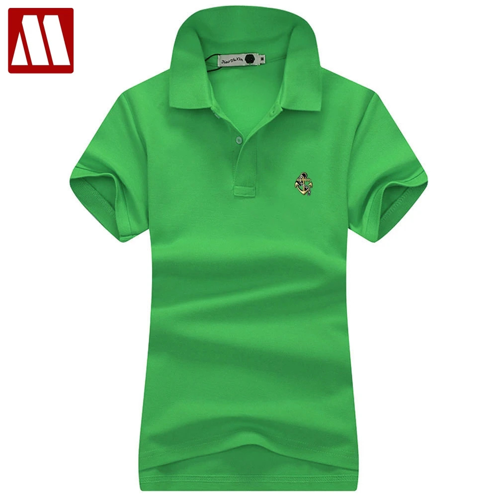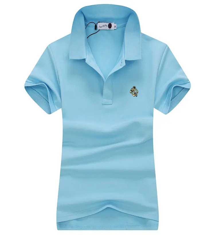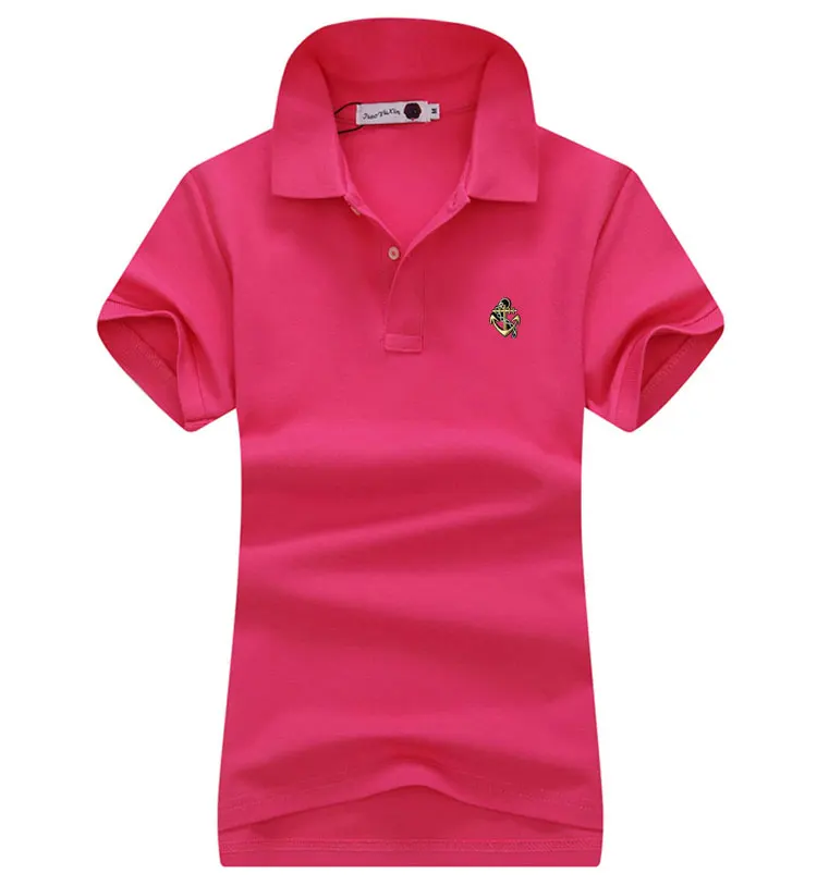 Поло с вышивкой, женские рубашки-поло, Женская Повседневная футболка с коротким рукавом, из рубашки Дамские топы хлопка, 14 цветов, лето, 2021
