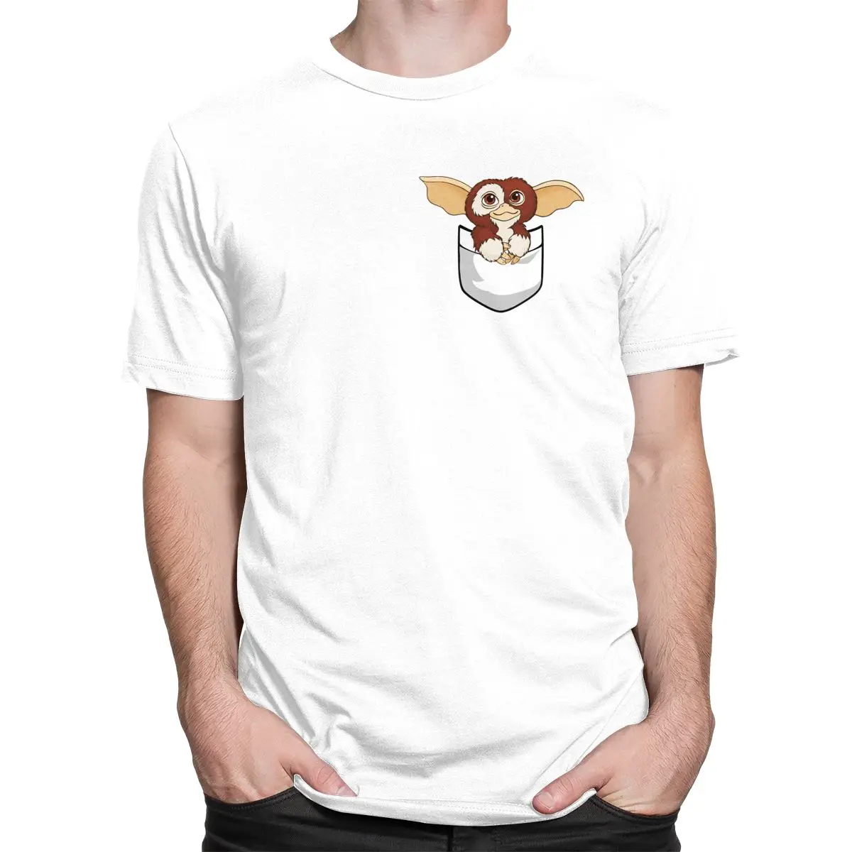 Футболка мужская с карманом Гизмо, хипстерская тенниска из чистого хлопка, футболка с монстром гремлином 80-х годов, Рождественская футболка из фильма ужасов, одежда для мальчиков