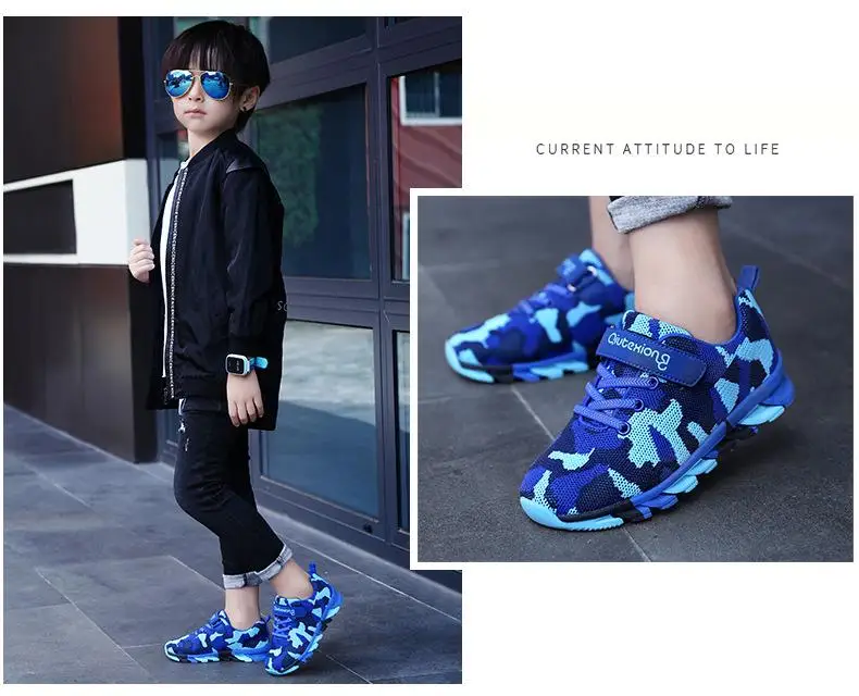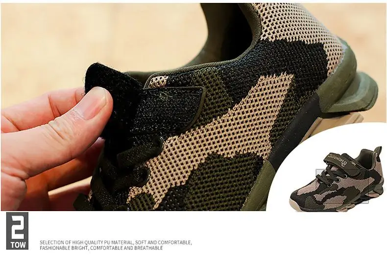 Камуфляжные детские кроссовки для мальчиков; Дышащие кроссовки из с...
