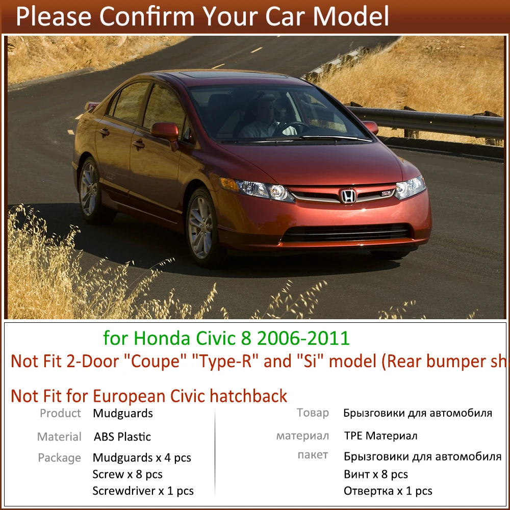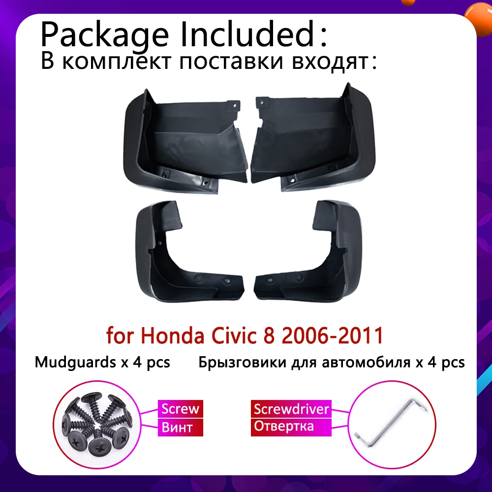 4 шт., задние брызговики для Honda Civic 8 2006 2007 2008 2009 2010 2011, облицовочные Брызговики, брызговики, защитные аксессуары