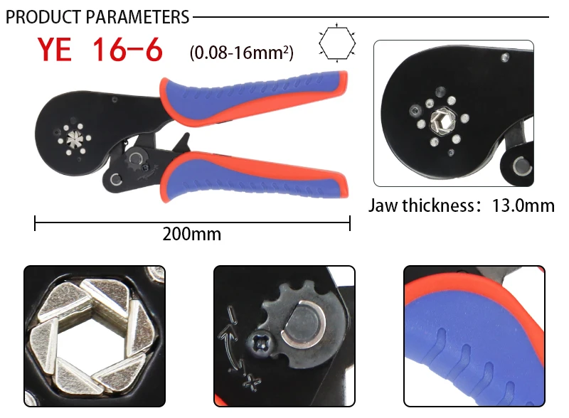 Обжимной инструмент для клемм YE 16-6 0,08-16 мм 30-5AWG, мини-плос...