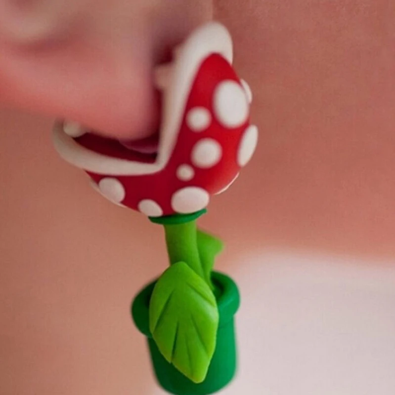 DIY милый ручной работы мягкий глиняный завод серьги цветок уха шпильки Супер Марио Chomper серьги Модные аксессуары серьги