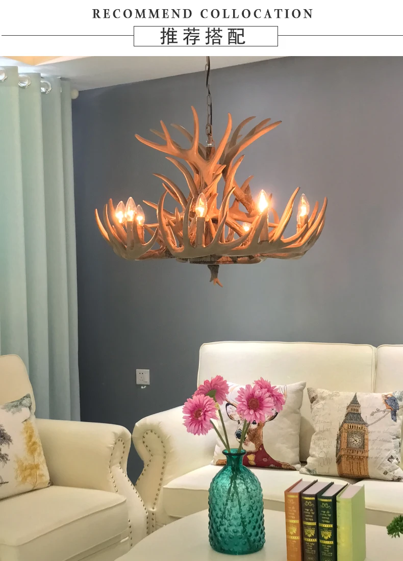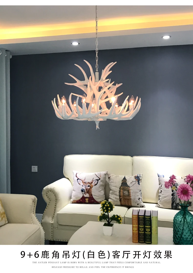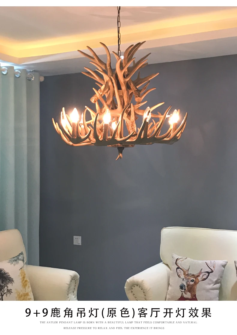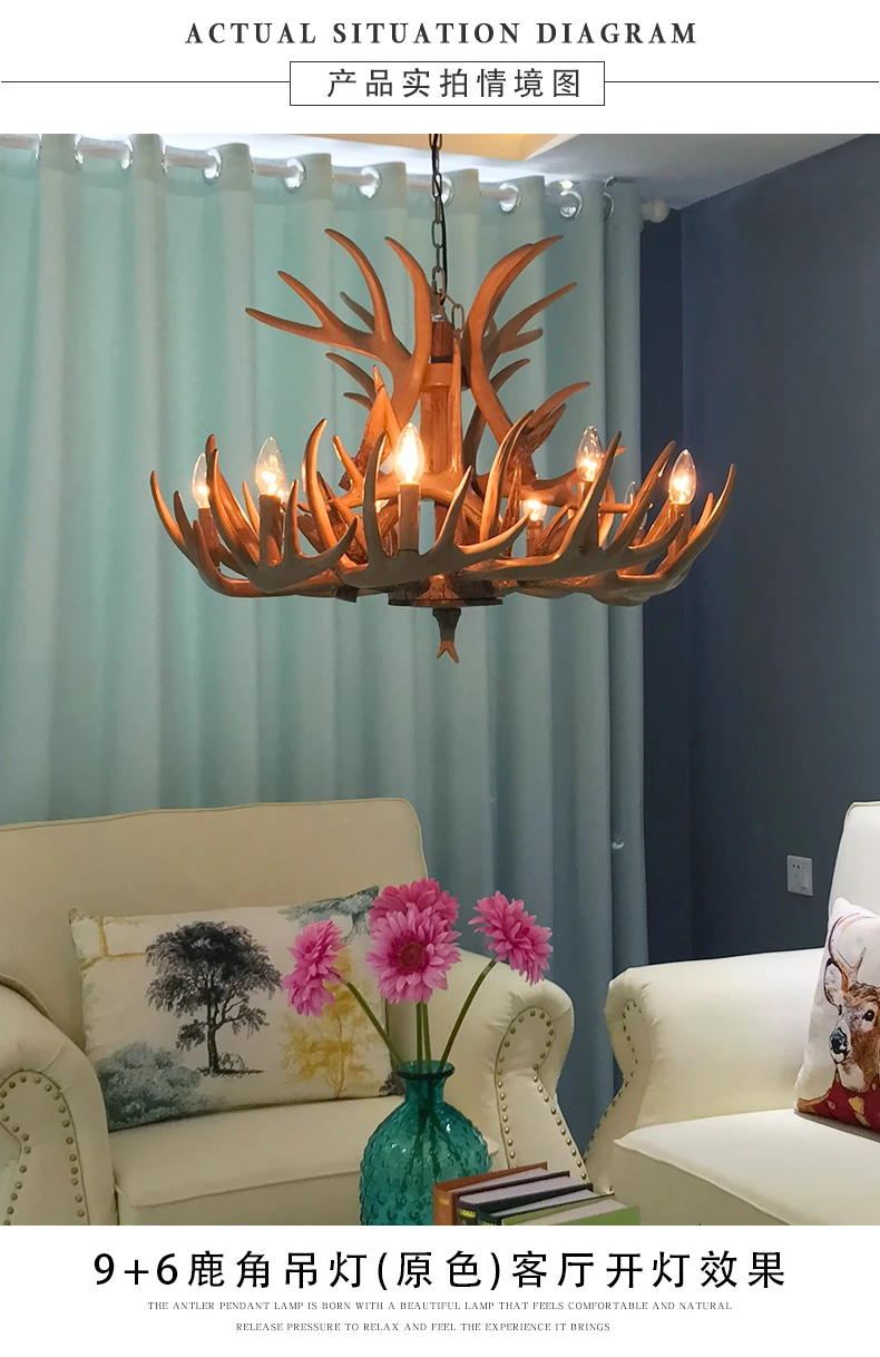 Ретро рога Люстра 4/6/9 руки рога Винтаж промышленный светильник для бара Гостиная спальня Лофт смолы головы оленя подвесной светильник
