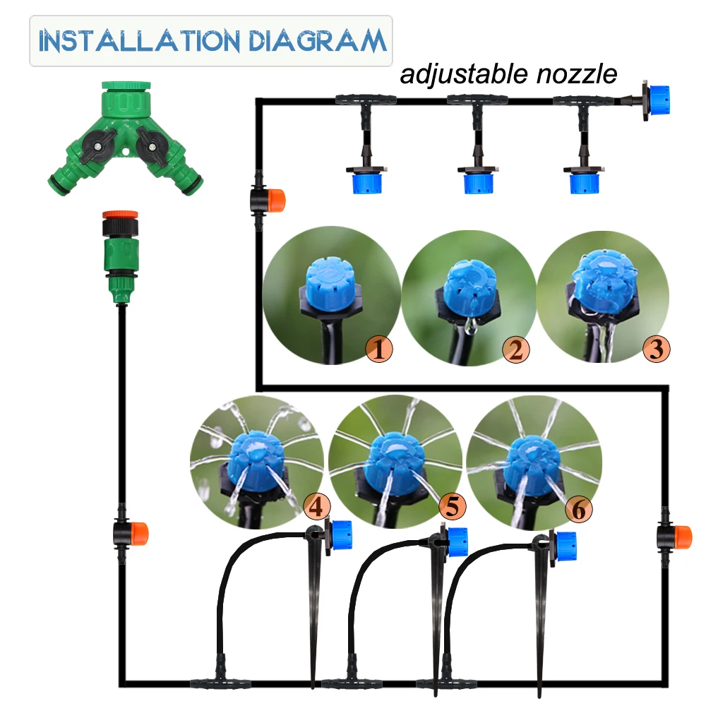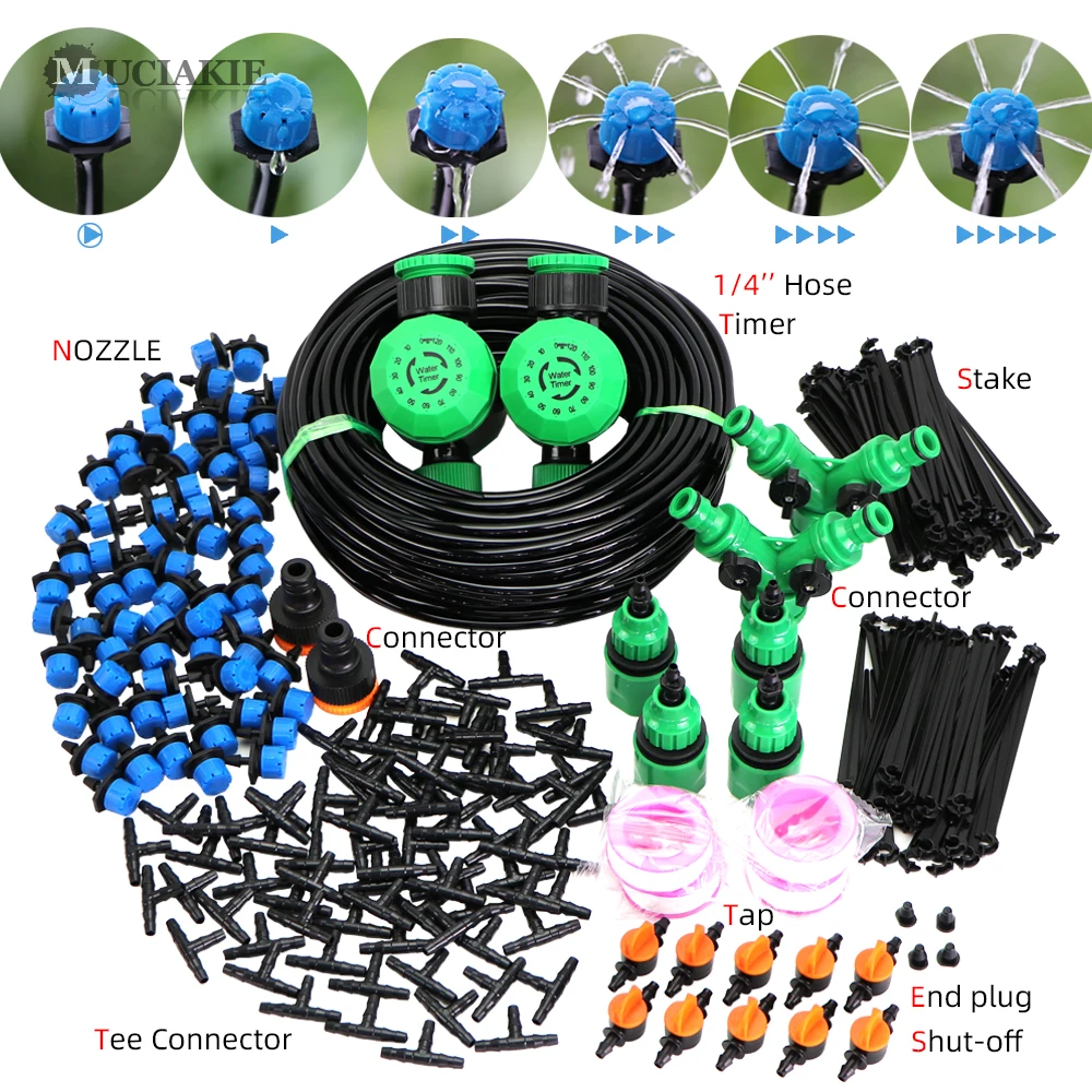 Система полива сада MUCIAKIE 60-5M, механический таймер, контроллер капельного орошения, синие регулируемые капельницы с полными разъемами