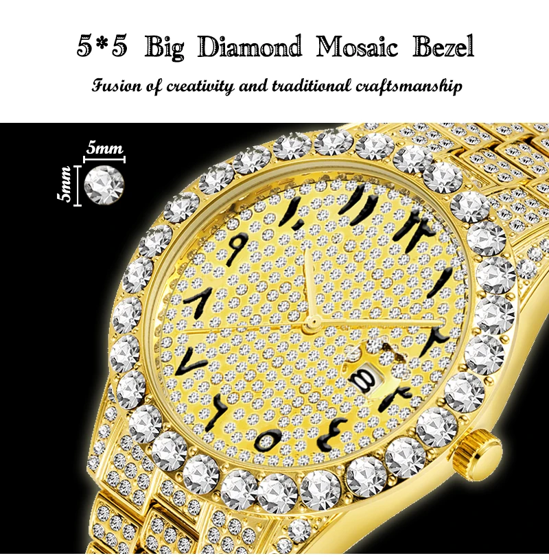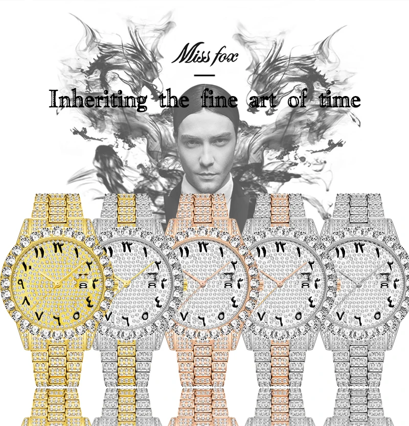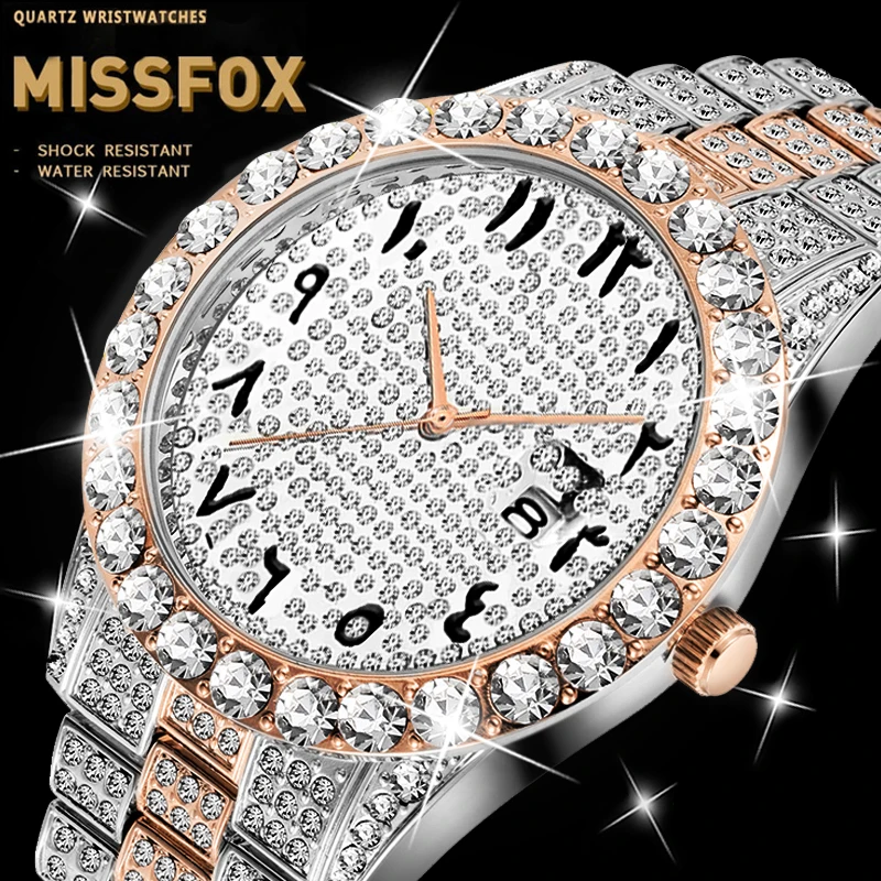 Missfox мужские часы с арабскими цифрами розовое золото AAA часы мужские Explorer водонепроницаемые Bling Hand часы для мужчин relogio masculino Стиль: роскошный -Большой алмаз -100% Новинка и высокое качество. -Кварцевый механизм для точного учета времени. -Ежедневная водонепроницаемость 30 м (не для душа и плавания), ударопрочность -Вакуумное напыление золота 18 карат, золотой цвет не выцветает. -Vatenlines, рождественский подарок, день рождения вечерние, день рождения, одежда для свиданий Особенности (прибл.): Диаметр чехла: около 4,4 см Толщина корпуса: около 1,2 см Материал корпуса: нержавеющая сталь Ширина ремешка: 2,5 см Длина ремешка: прибл. 22,00 см Материал ремешка: нержавеющая сталь Регулируемый ремешок: Да, можно продлить, свяжитесь с нашей Золотой службой поддержки клиентов Посылка 1 х часы
