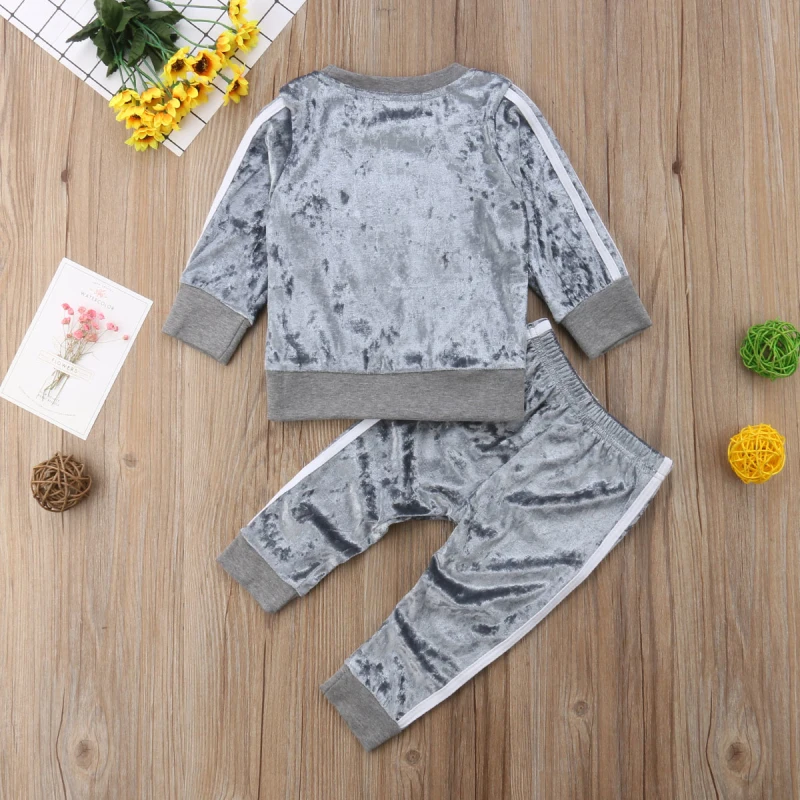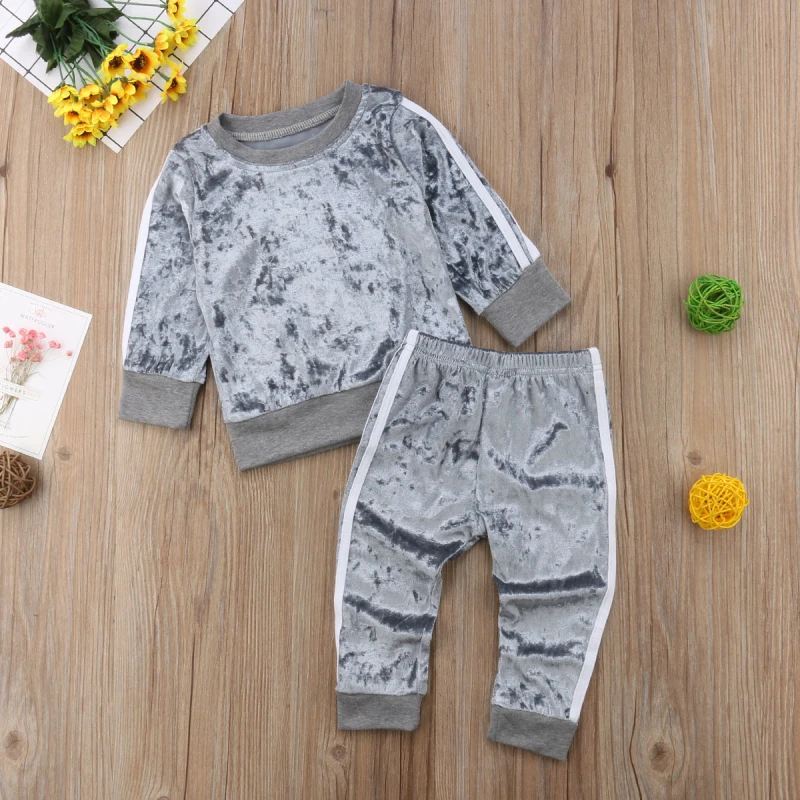 Осень-зима 2020, бархатные комплекты одежды для маленьких девочек, Однотонная футболка с длинным рукавом и штаны, комплекты одежды из двух предметов, Прямая поставка