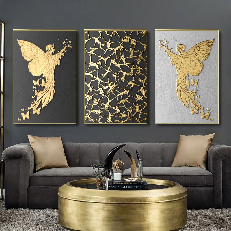 Абстрактный желтый ангел кольцо с деревом Серебряный лист черный мрамор Современная Картина на холсте рамы принты украшения дома стены гостиной