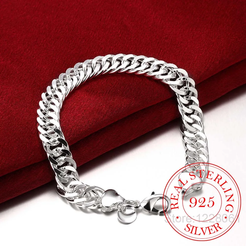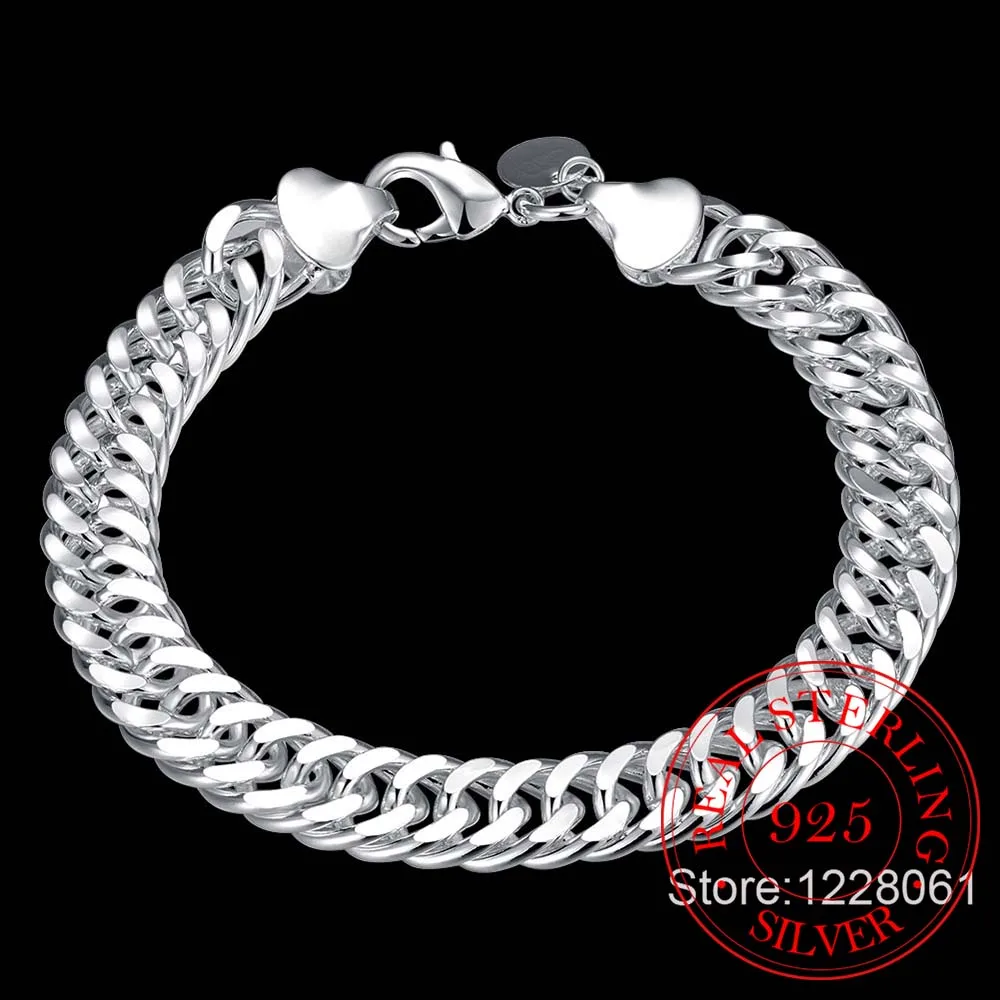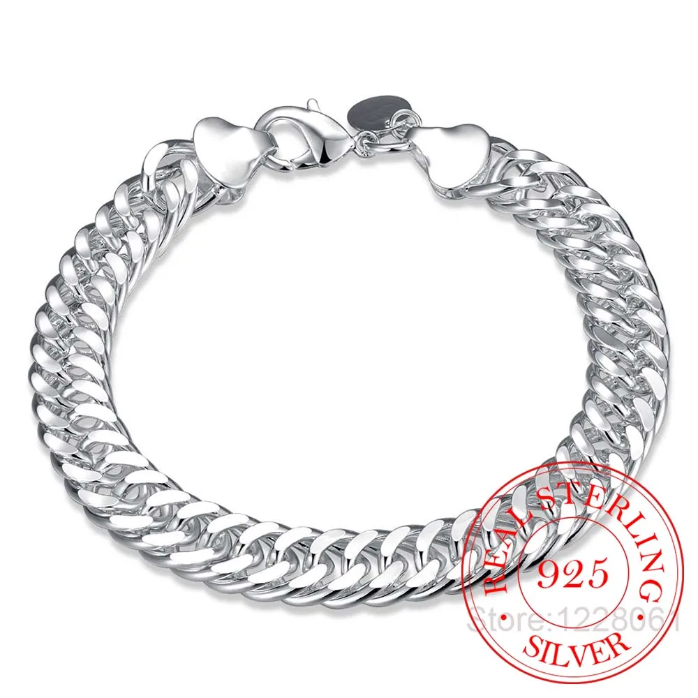Акция 100% Аутентичное серебро 925 пробы женский браслет-цепочка 10 мм Оптовая Продажа Модные мужские ювелирные изделия серебряный мужской браслет