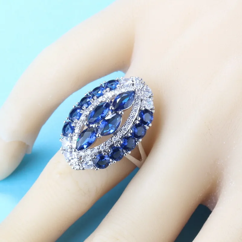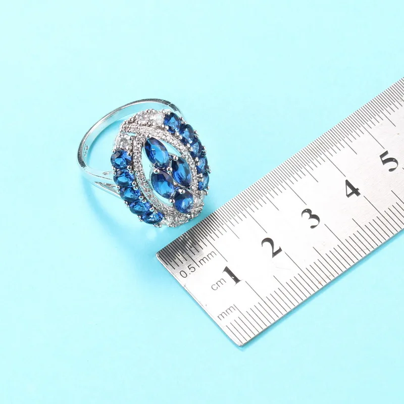 Свадебные серебряные 925 Свадебные аксессуары женские синие кубичес...