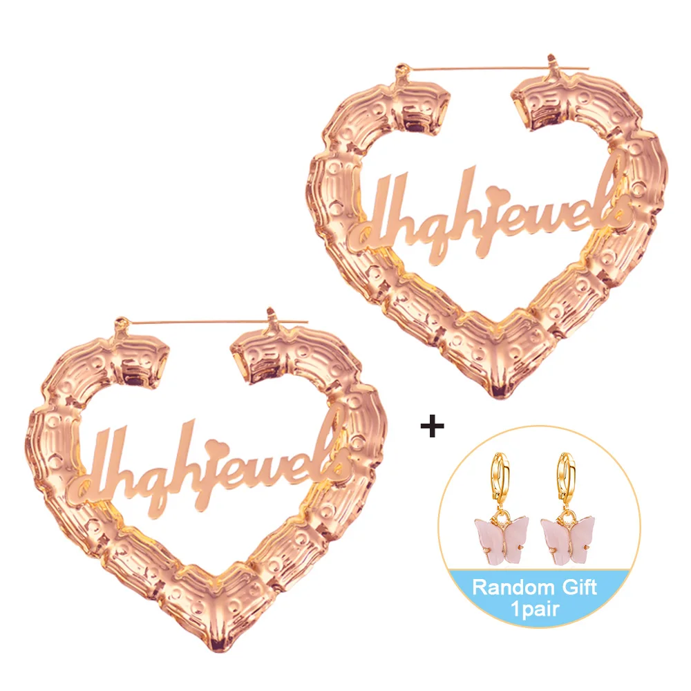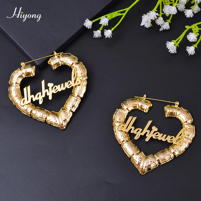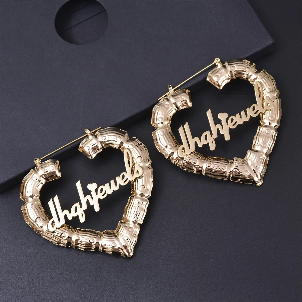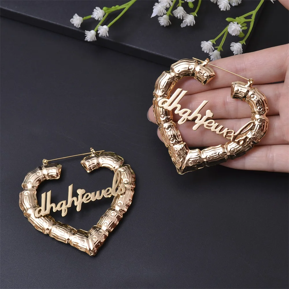 Серьги женские в форме сердца, 7090 мм, индивидуальные серьги, бамбук серьги-кольца