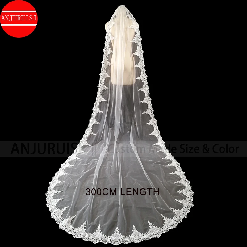 Новинка, элегантная Длинная свадебная вуаль, кружевная кромка, один слой, свадебная фата, длина 3 метра, свадебные аксессуары, вуаль, свадебная вуаль