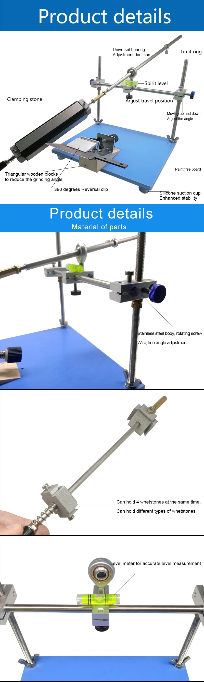 Это профессиональная точилка с фиксированным углом, которую мы разработали до сих пор. Он может шлифовать различные инструменты под самым маленьким углом. И ручка точильного камня имеет несколько функций, и может работать 4 различных точильных камня одновременно. И может держать любую длину точильного камня, более практично, чем точилка ruixin pro. Нет необходимости в любом операционном столе, его можно разместить в любом месте для полировки. Изысканная упаковка, полные инструменты для установки и аксессуары, и оснащено английской версией Руководства. В упаковке есть набор точилок, оснащенных камнями для заточки бриллиантов 200 #800 #1500 #, 1 воловьей лентой.