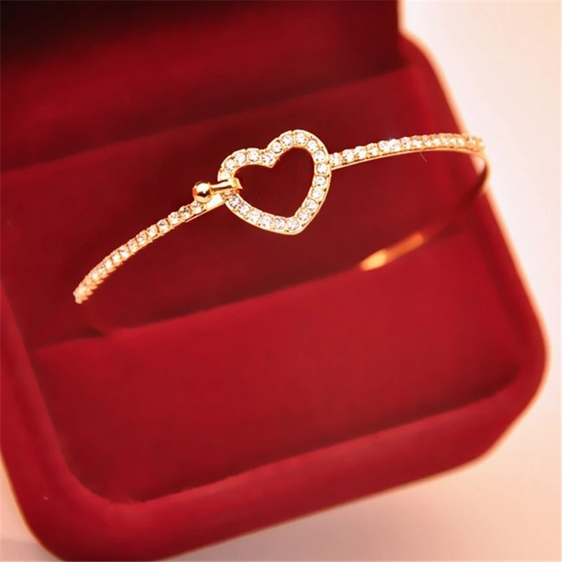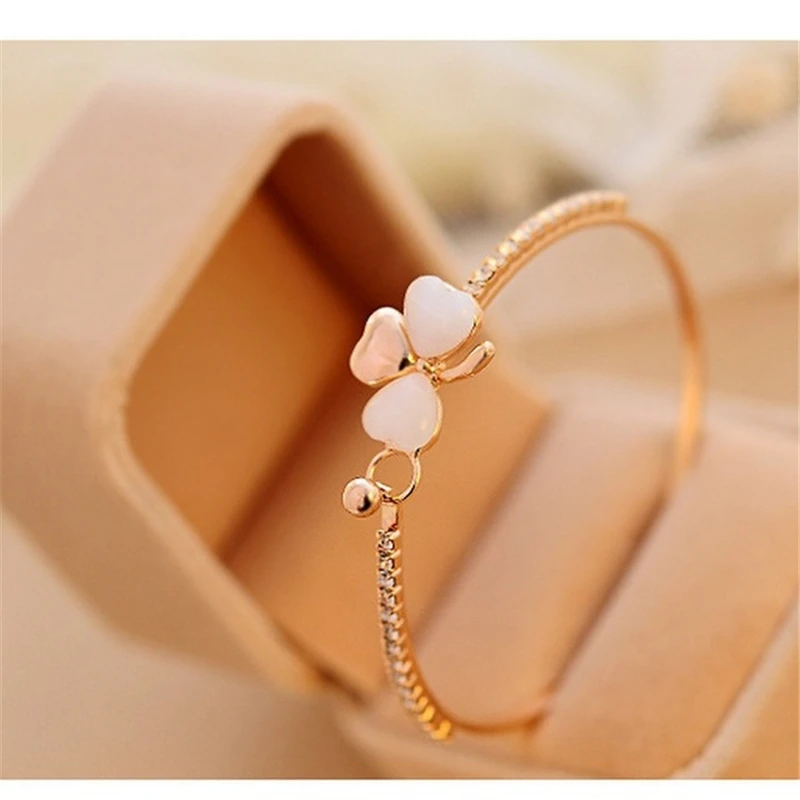 Браслет женский регулируемый, с двойным кристаллом, в форме сердца, с бантом, 2020